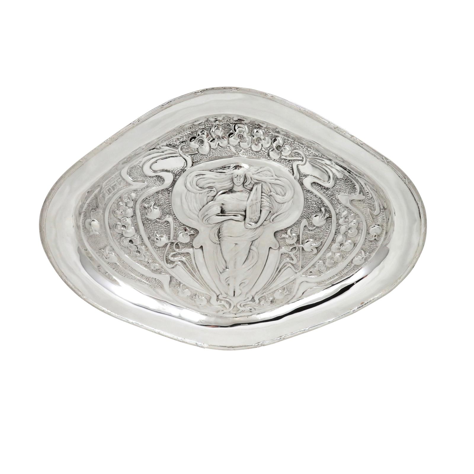 Antique Art Nouveau Sterling Silver 11" Dressing Tray 1904