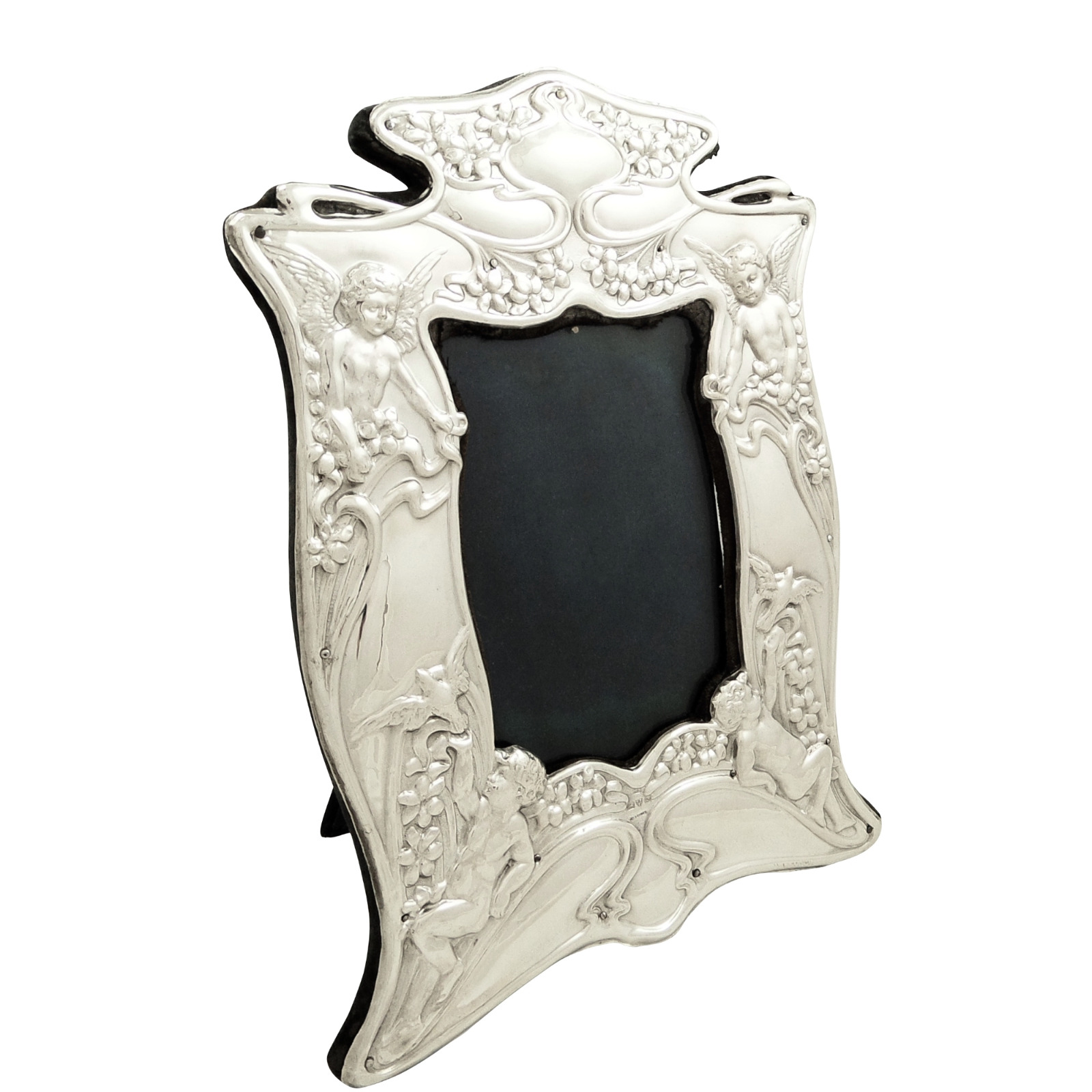 Antique Art Nouveau Sterling Silver 'Angels' Photo Frame 1907