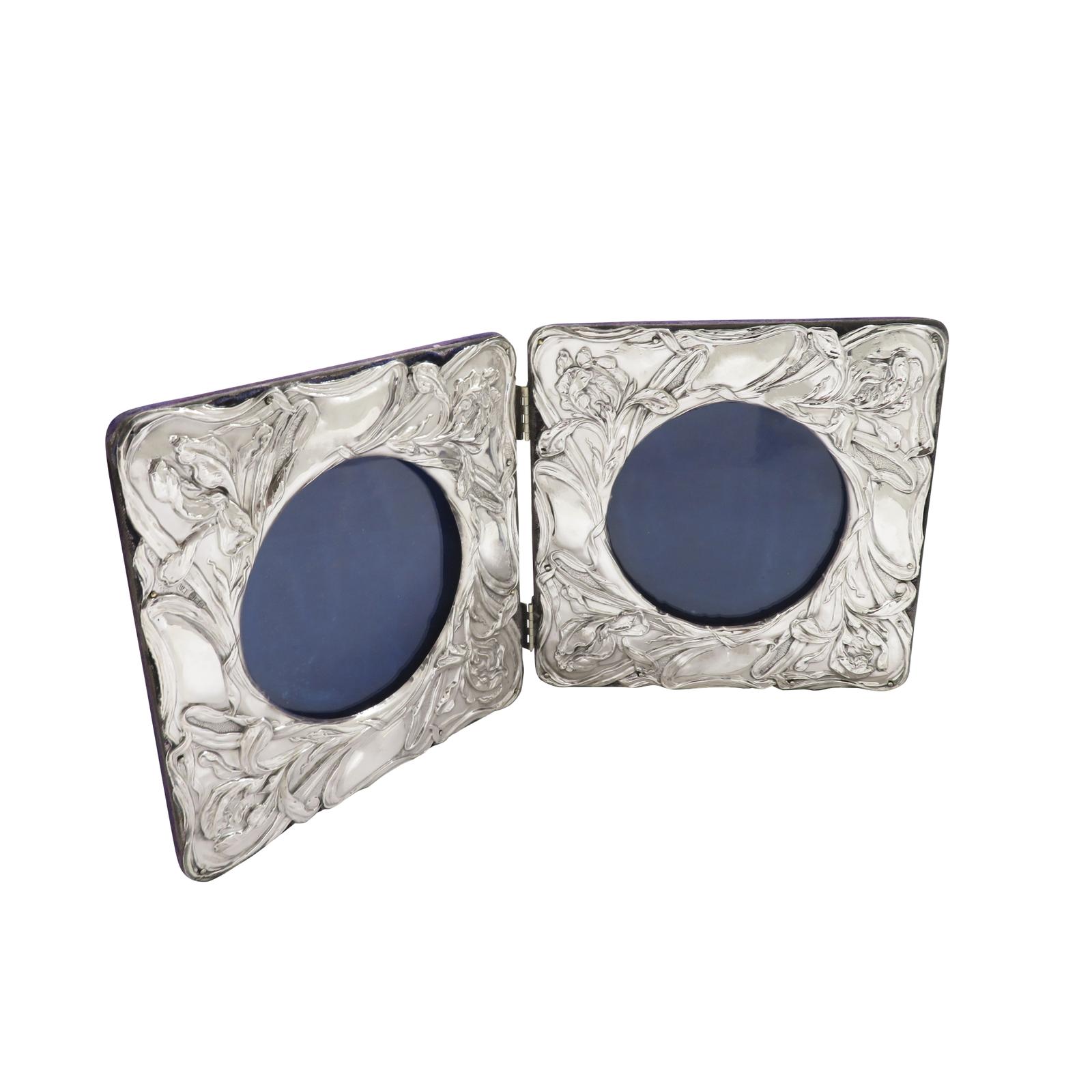 Antique Art Nouveau Sterling Silver Double Hinged Folding Photo Frame 1903