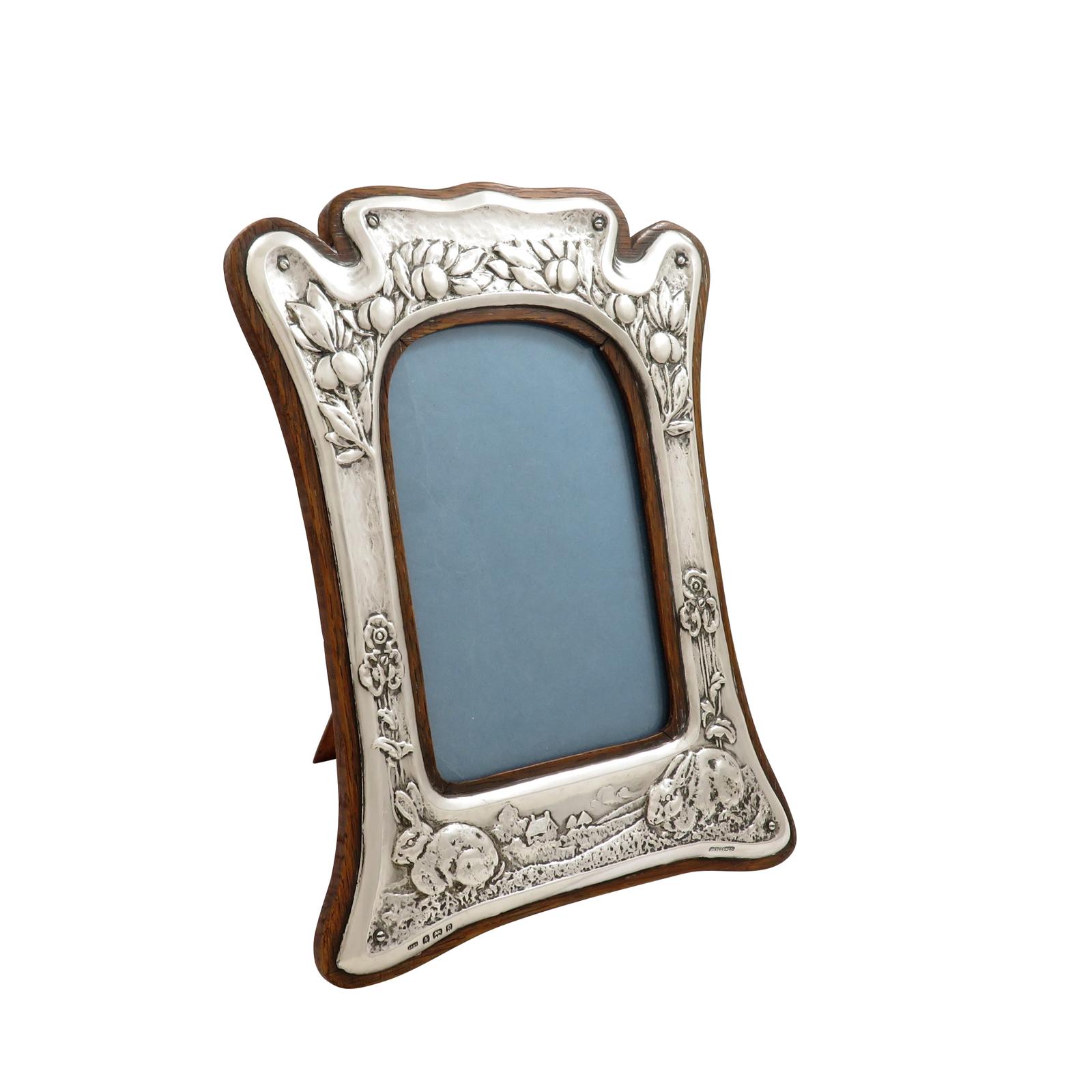 Antique Art Nouveau Sterling Silver 'Rabbits' Photo Frame 1904