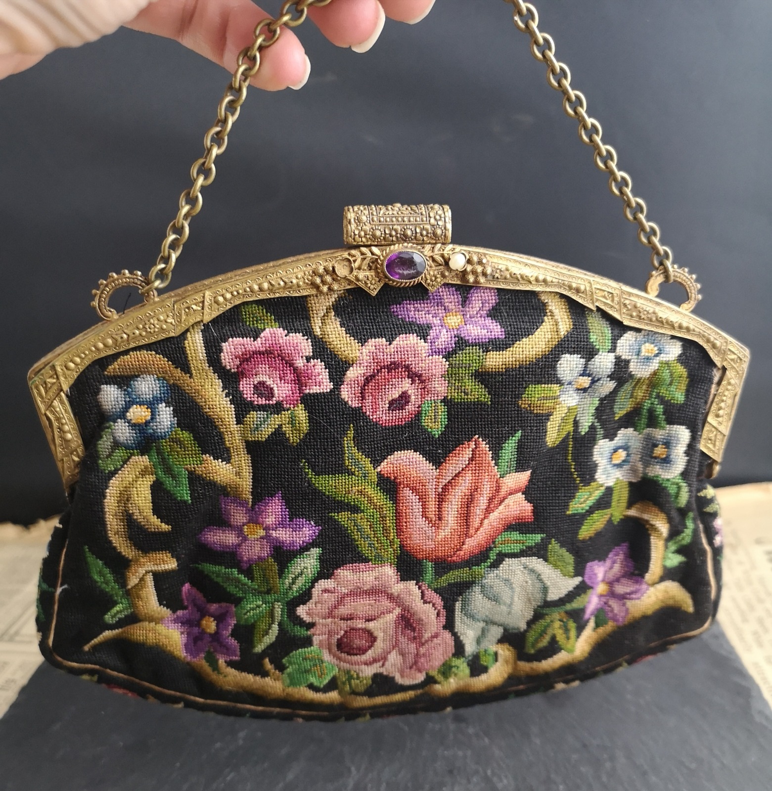 Antique Art Nouveau Tapestry Purse, Evening Bag