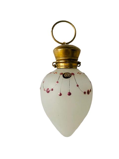 Antique Art Nouveau White Opaline Enamel & Gilt Glass Egg Form Chatelaine Perfume Scent Bottle c.1900