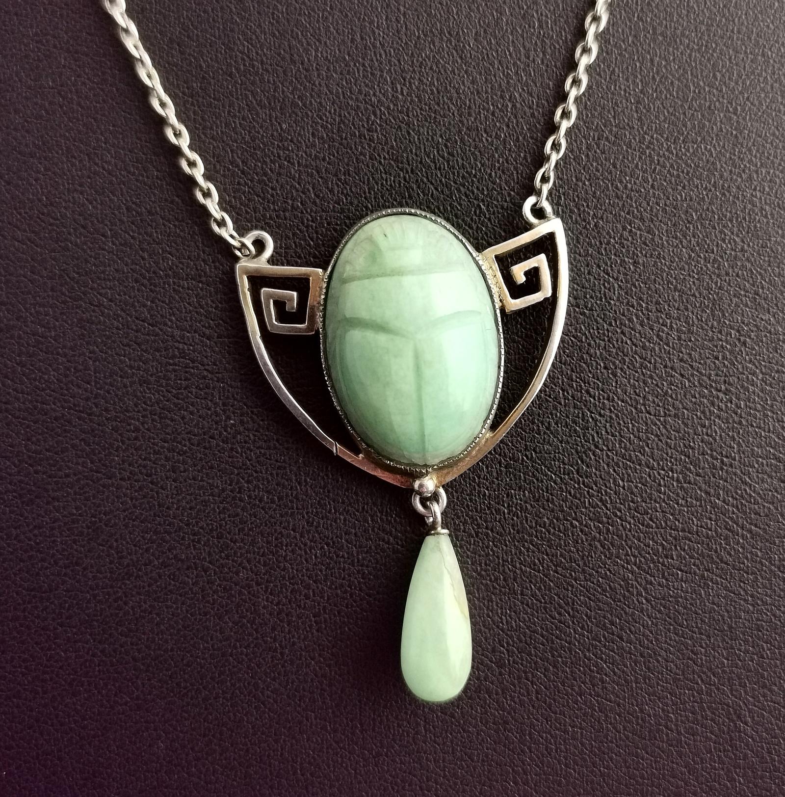 Antique Arts and Crafts Silver and Amazonite Scarab Necklace