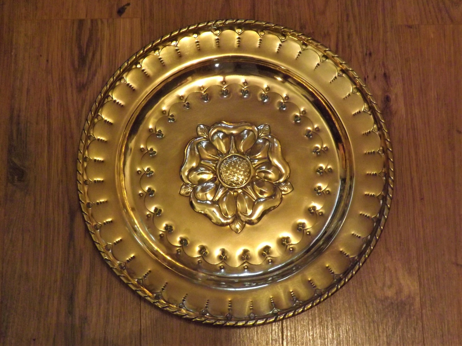 Antique Arts & Crafts Brass Handmade Tudor Rose Plate / Charger c.1900 (1 of 1)