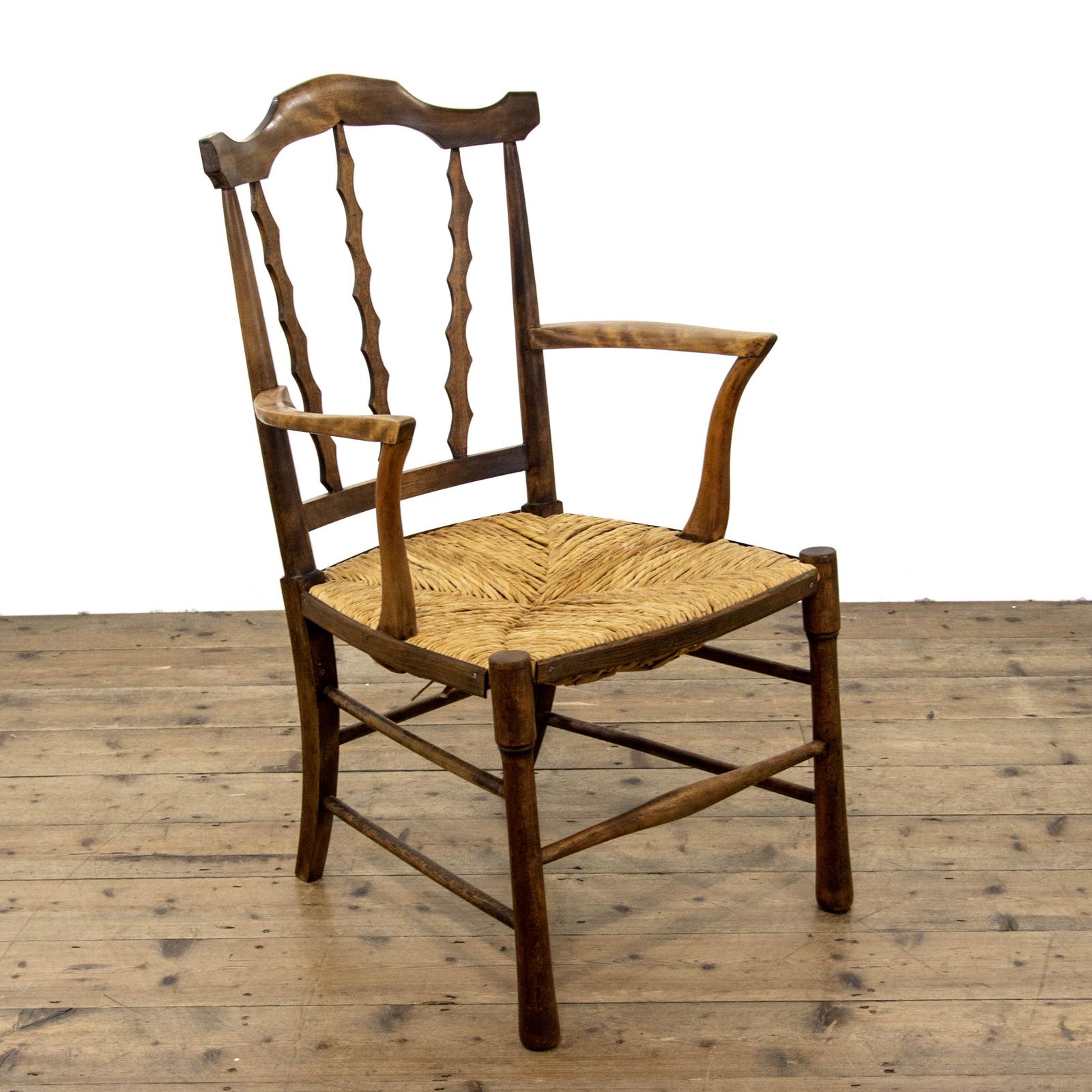 Antique Arts & Crafts Elm and Rush Elbow Chair (1 of 10)