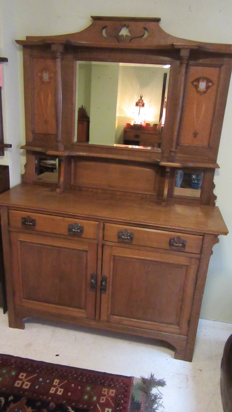Antique Arts & Crafts Inlaid Oak Dresser