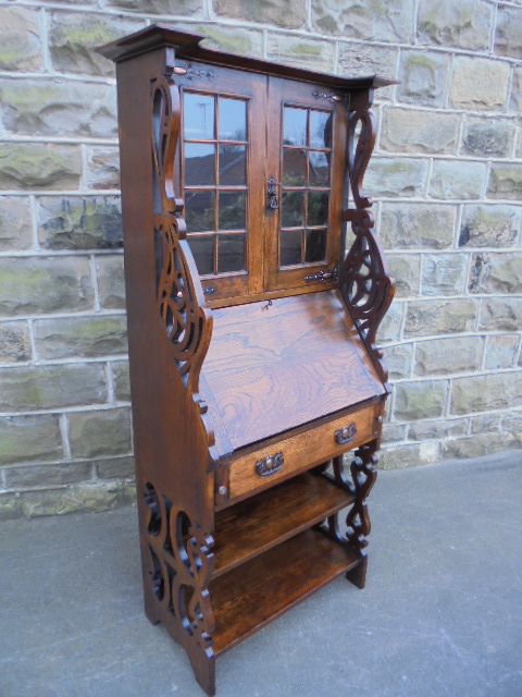 Antique Arts & Crafts Oak Bureau Bookcase c.1900