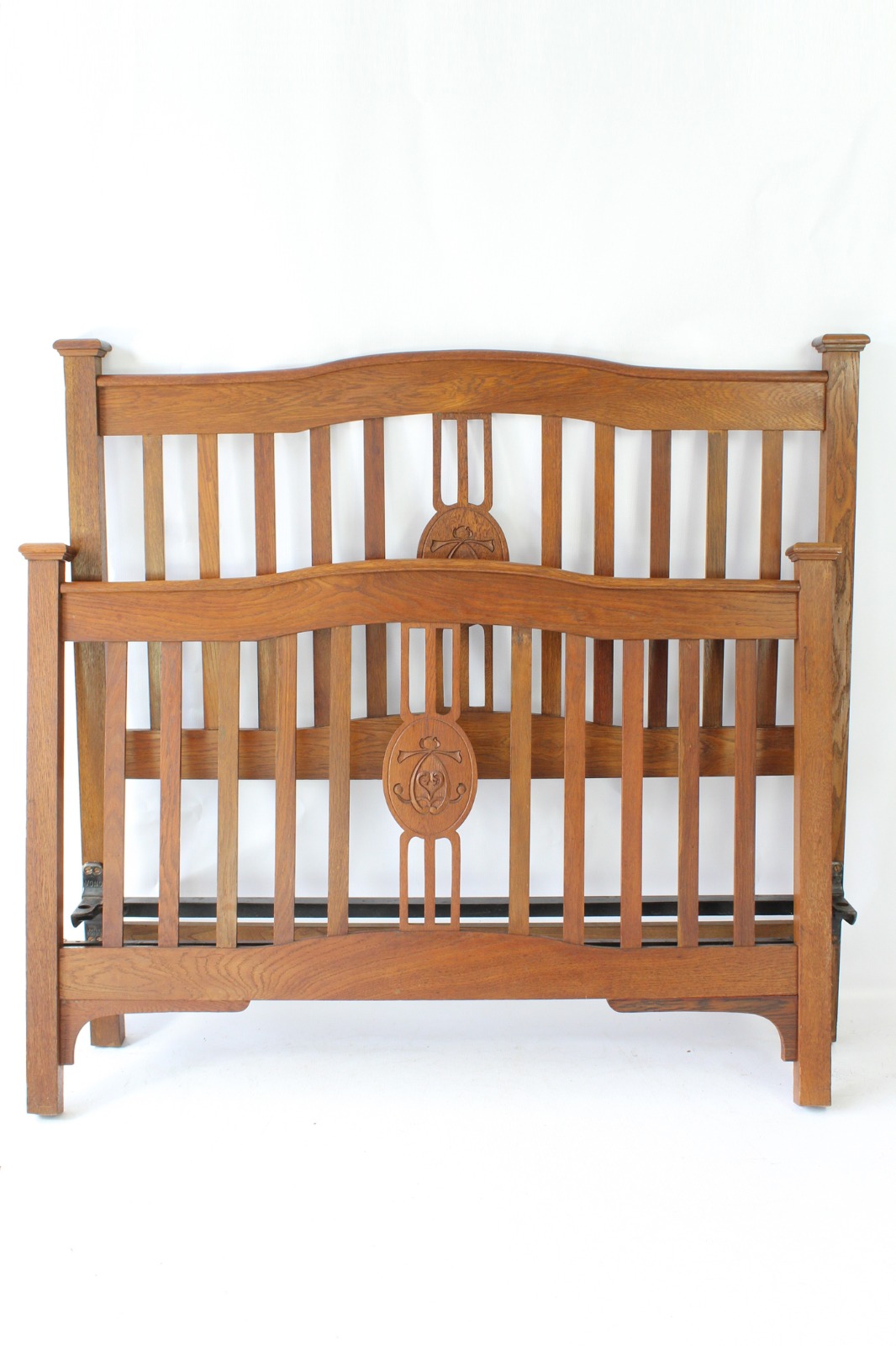 Antique Arts & Crafts Oak Double Bed (1 of 1)