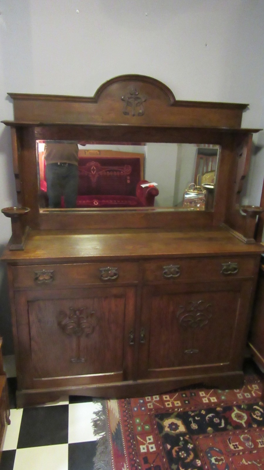 Antique Arts & Crafts Oak Mirror Back Sideboard