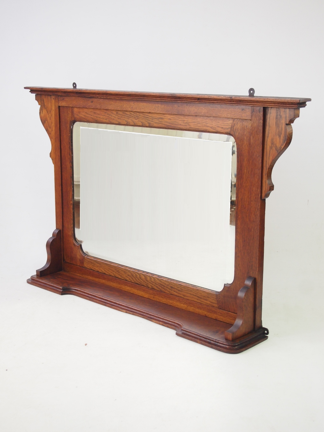 Antique Arts & Crafts Oak Overmantle Mirror c.1905