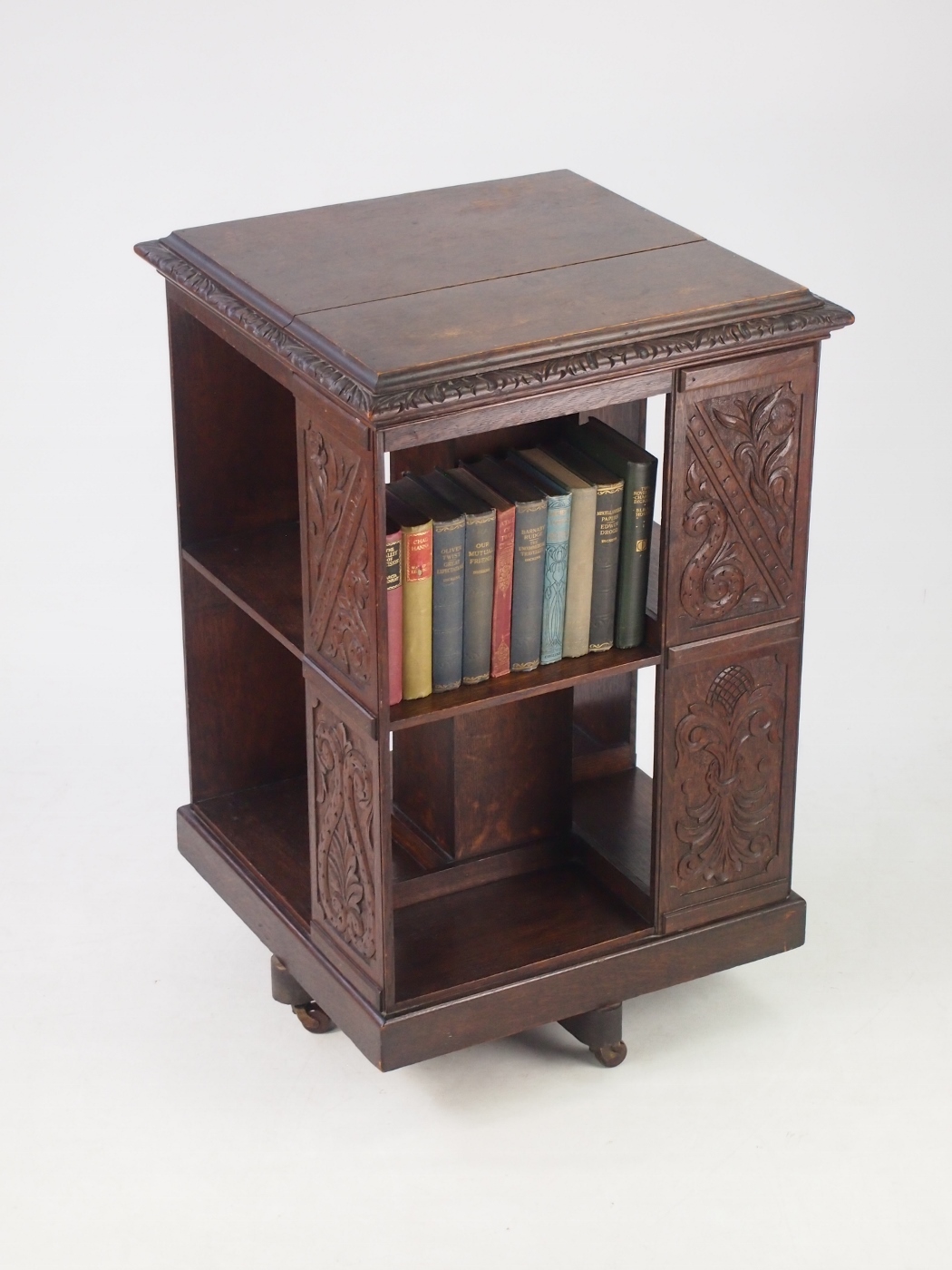 Antique Arts & Crafts Oak Revolving Bookcase (1 of 1)