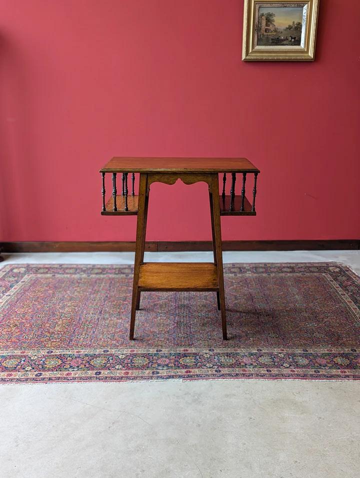 Antique Arts & Crafts Oak Side Table with Bookshelves (1 of 12)