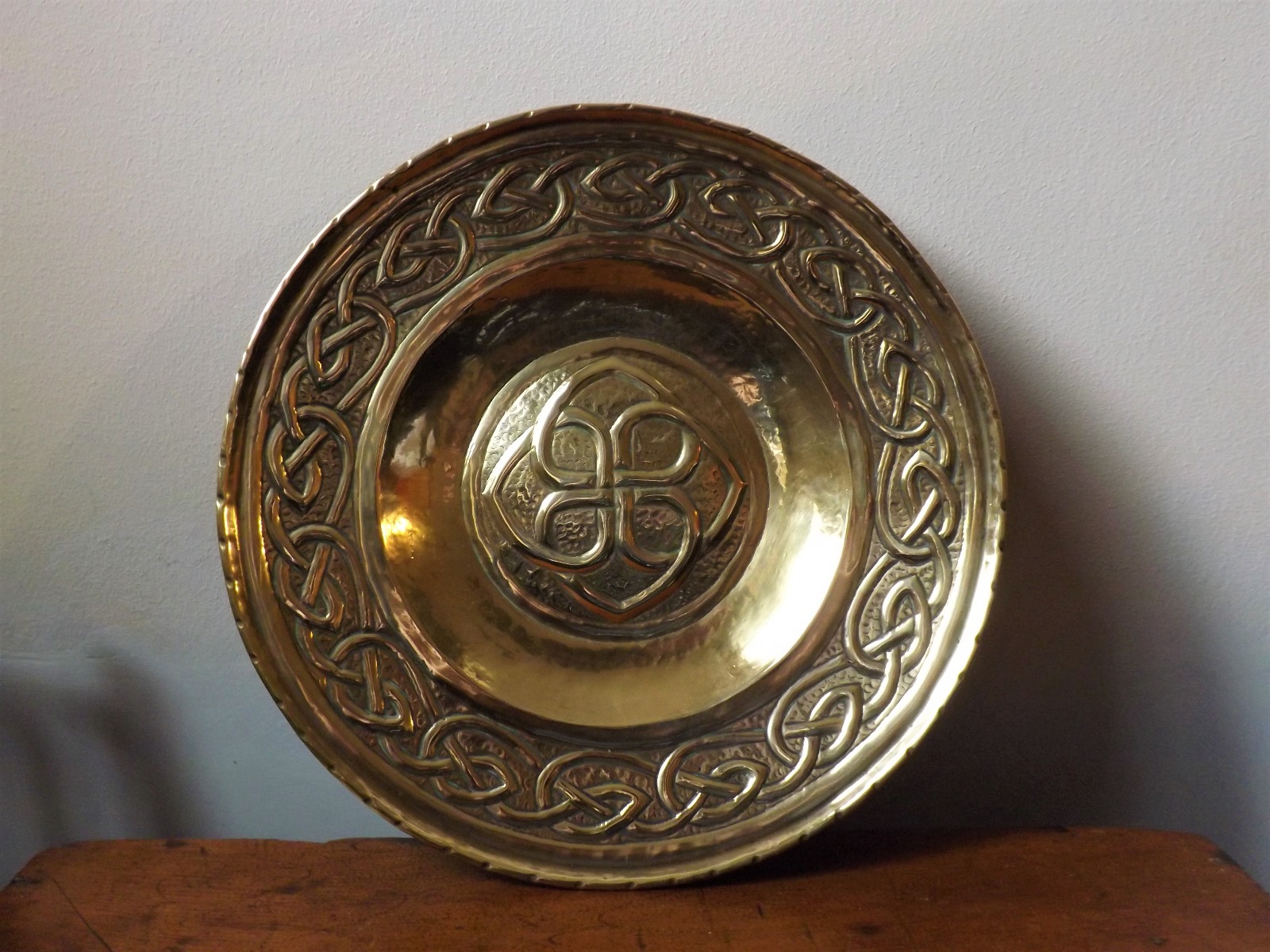 Antique Arts & Crafts Scottish School Celtic Revival Brass Dish c.1910 (1 of 1)