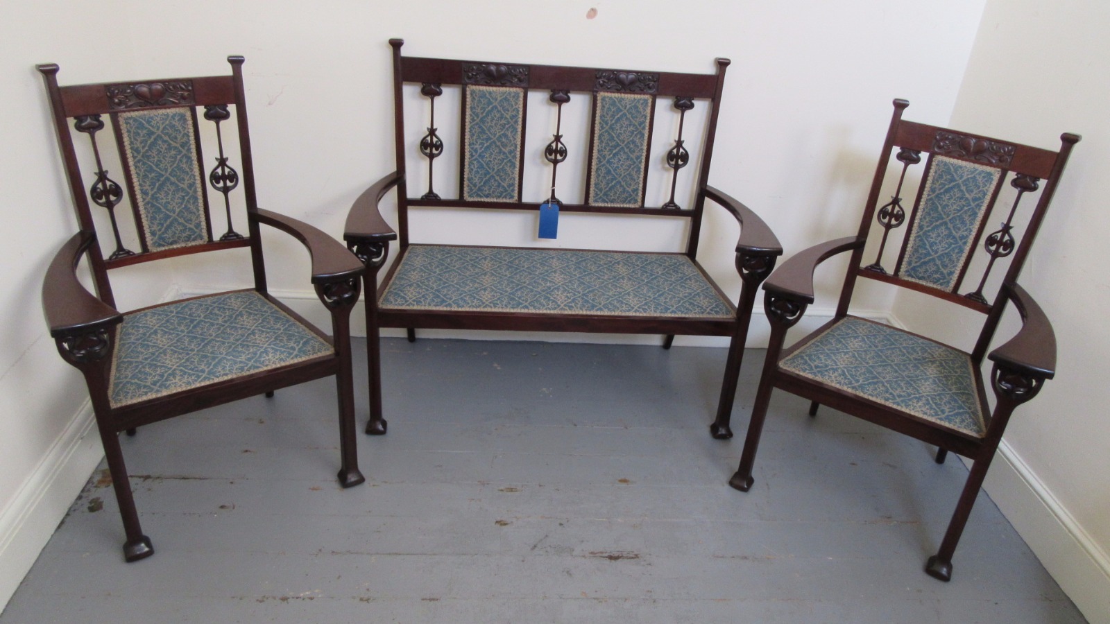 Antique Arts & Crafts Three Piece Mahogany Drawing Room Suite