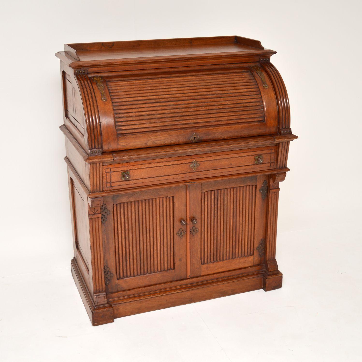 Antique Arts & Crafts Walnut Tambour Top Desk / Bureau (1 of 14)
