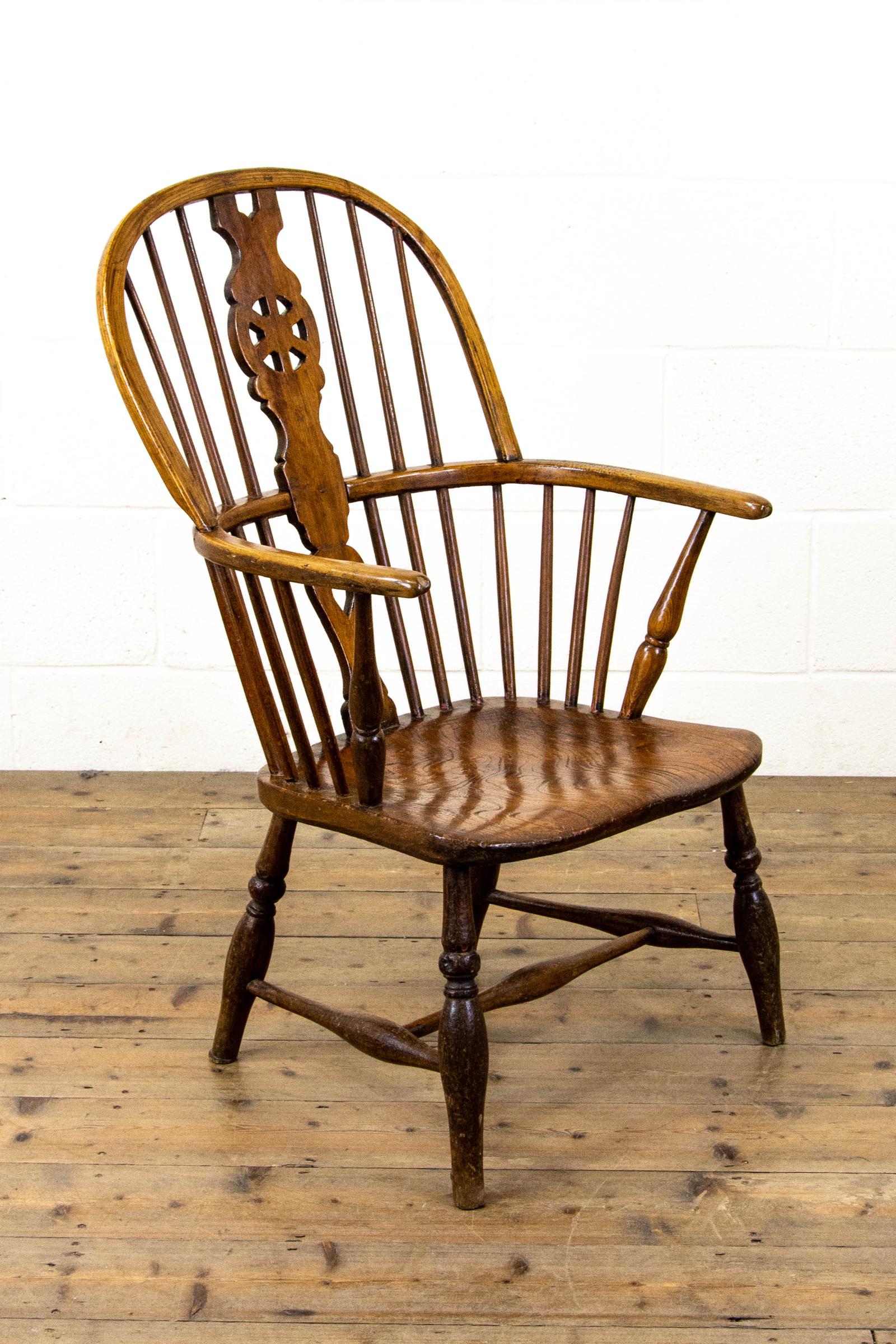 Antique Ash & Elm Wheel Back Windsor Armchair