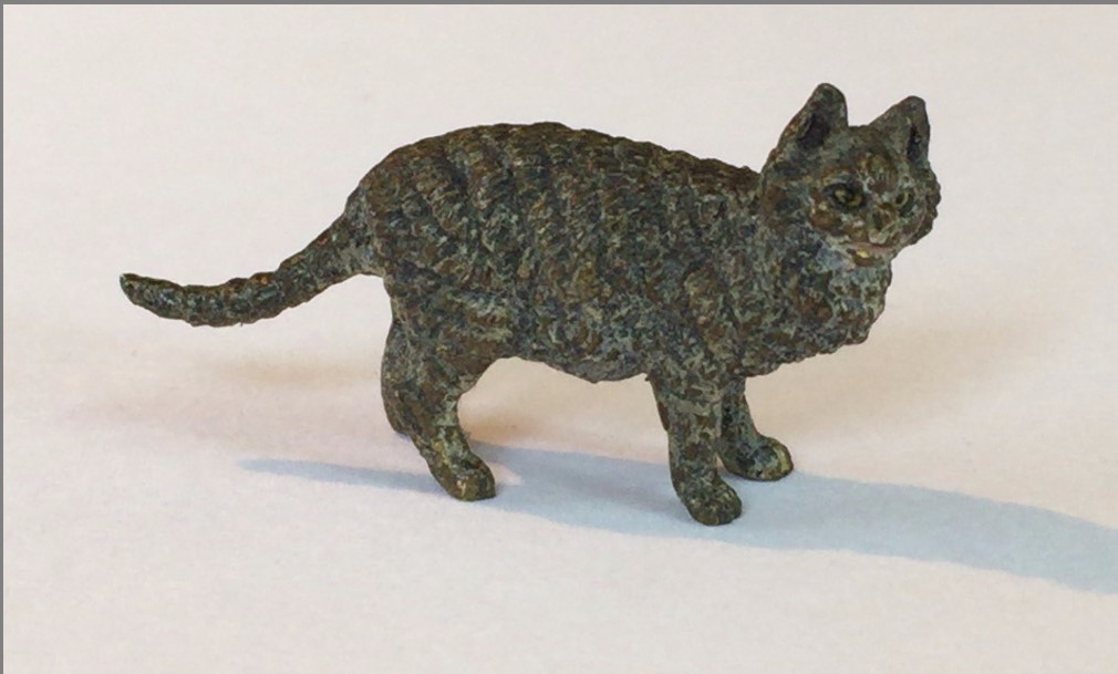 Antique Austrian Cold Painted Bronze Miniature Tabby Cat in the Manner of Bergman