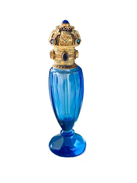 Antique Austro Hungarian Turquoise Blue Perfume Scent Bottle with Jewelled & Enamel Egyptian Gods Stopper c.1900