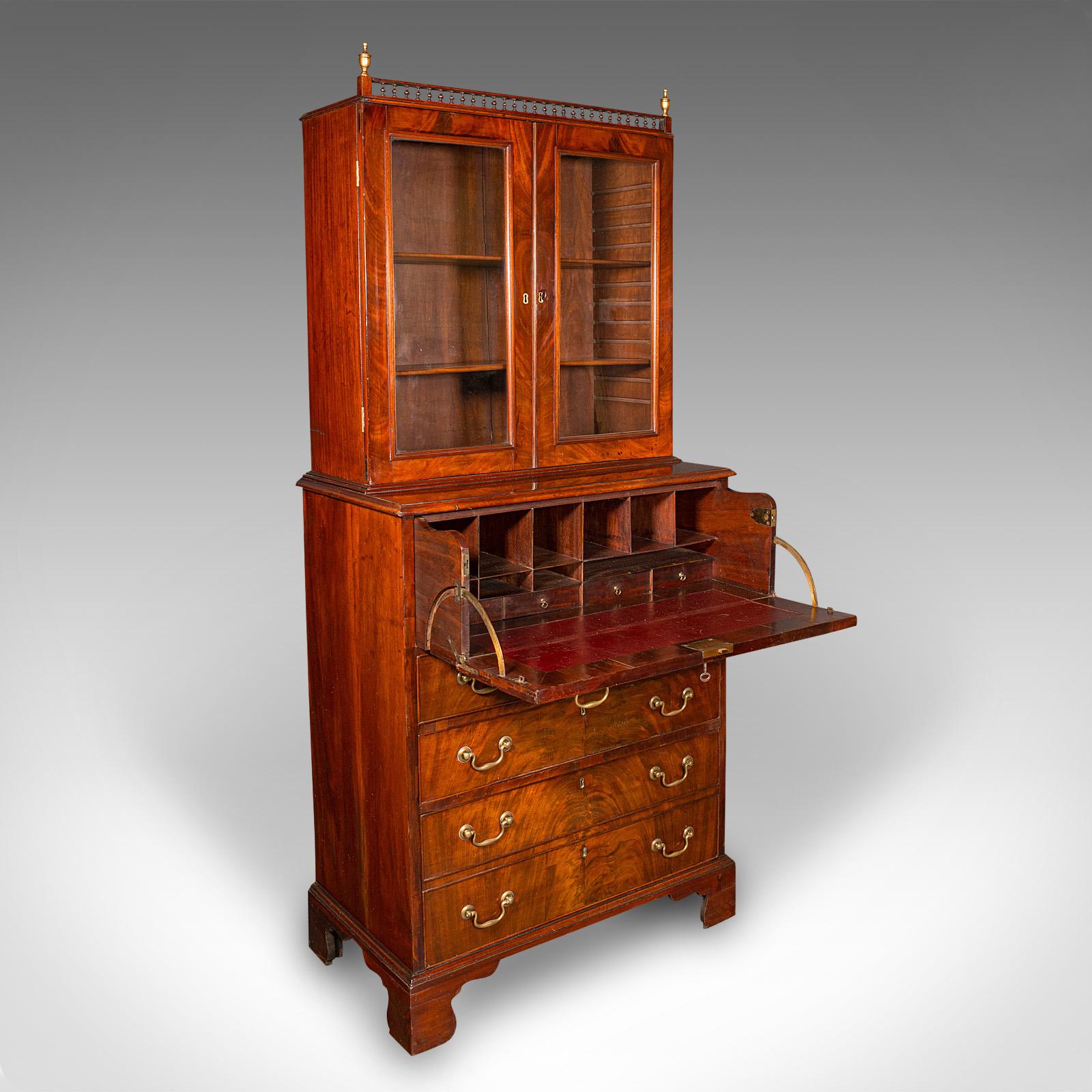 Antique Author's Chest, English, Secretaire Cabinet, Glazed Bookcase, Georgian