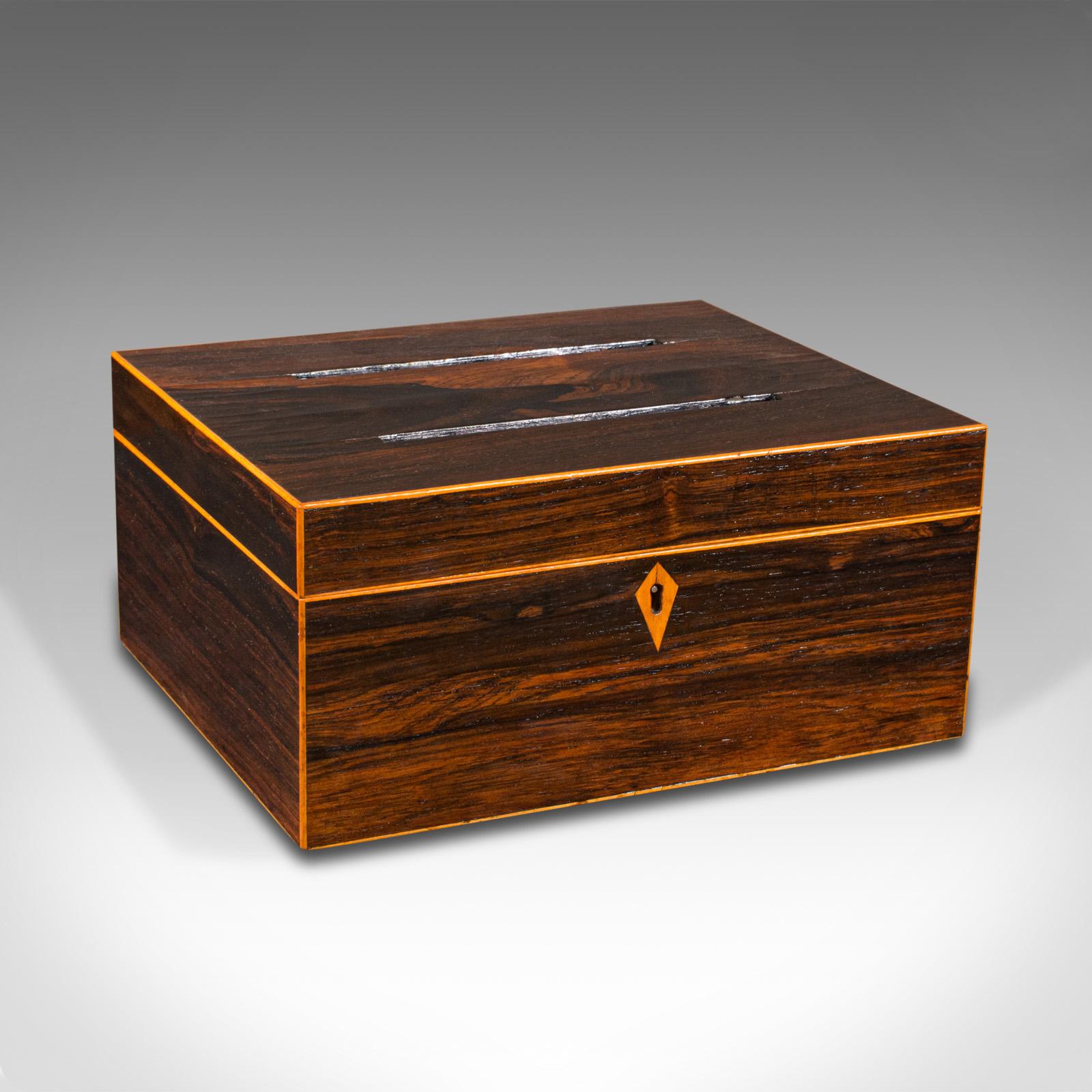 Antique Ballot Box, English, Rosewood, Inlaid, Voting, Post, Victorian c.1900