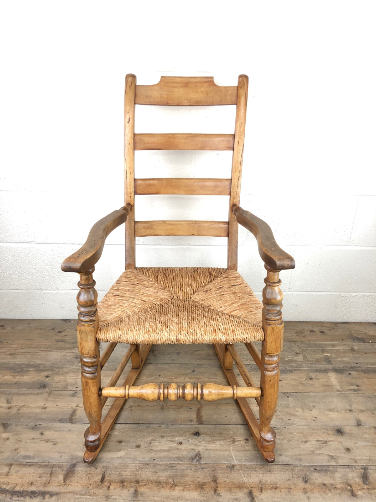 Antique Bar Back Rocking Chair with Rush Seat (1 of 9)