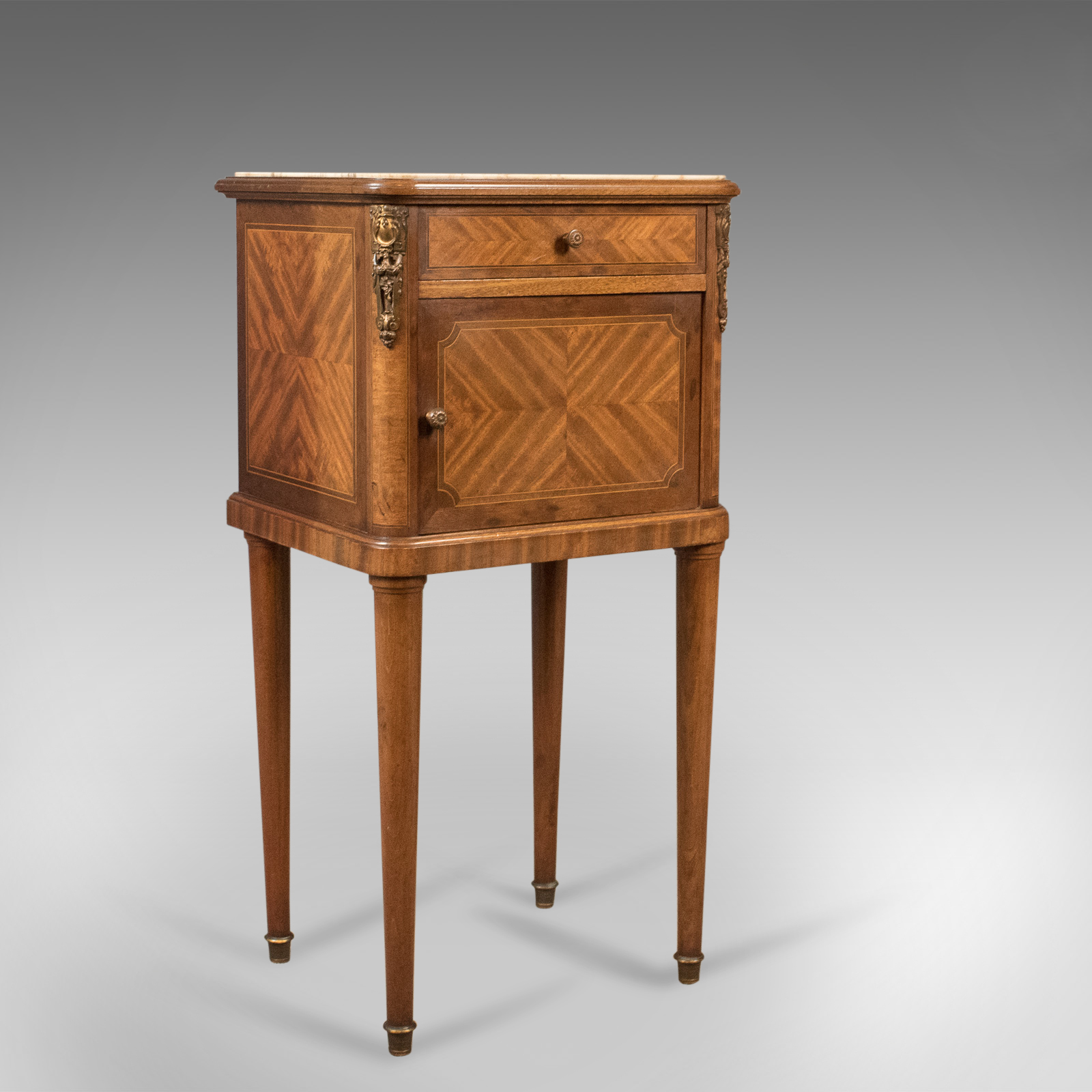 Antique Bedside Cabinet, French Marble Topped Nightstand c.1880