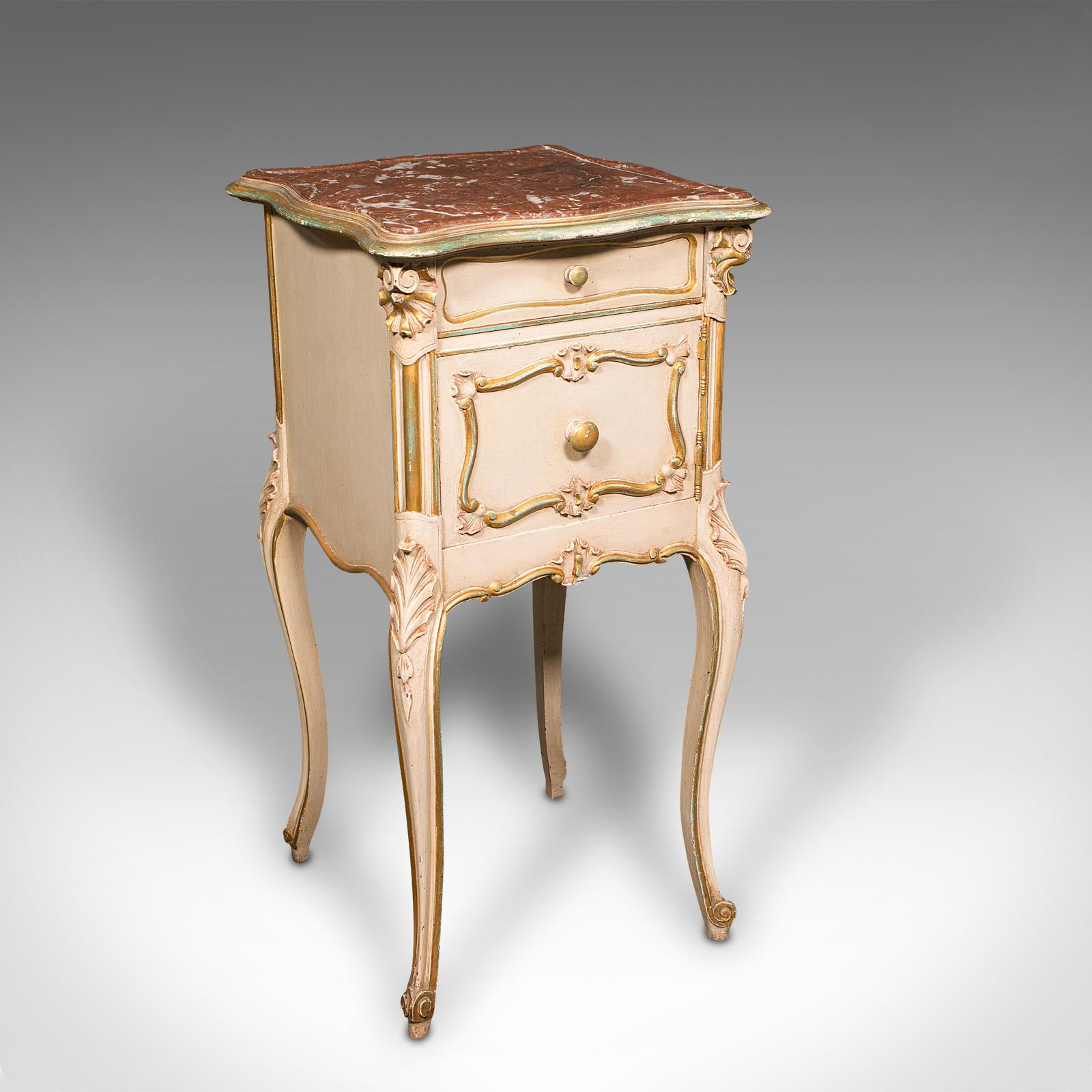 Antique Bedside Cabinet, French, Painted Pine, Marble, Pot Cupboard, Victorian