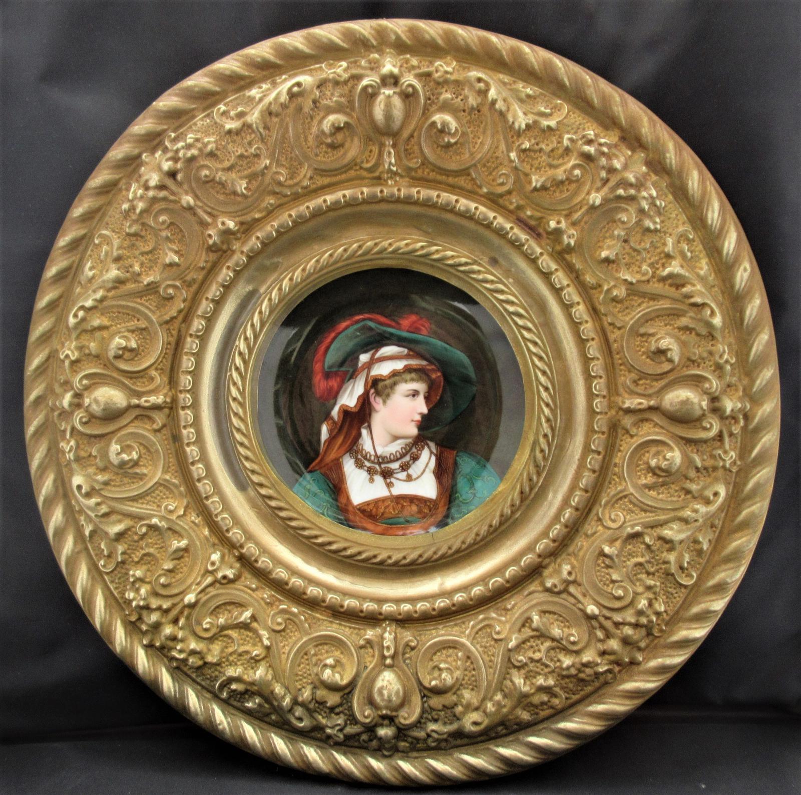 Antique Berlin Porcelain Dish in Repoussée Brass Frame c.1880