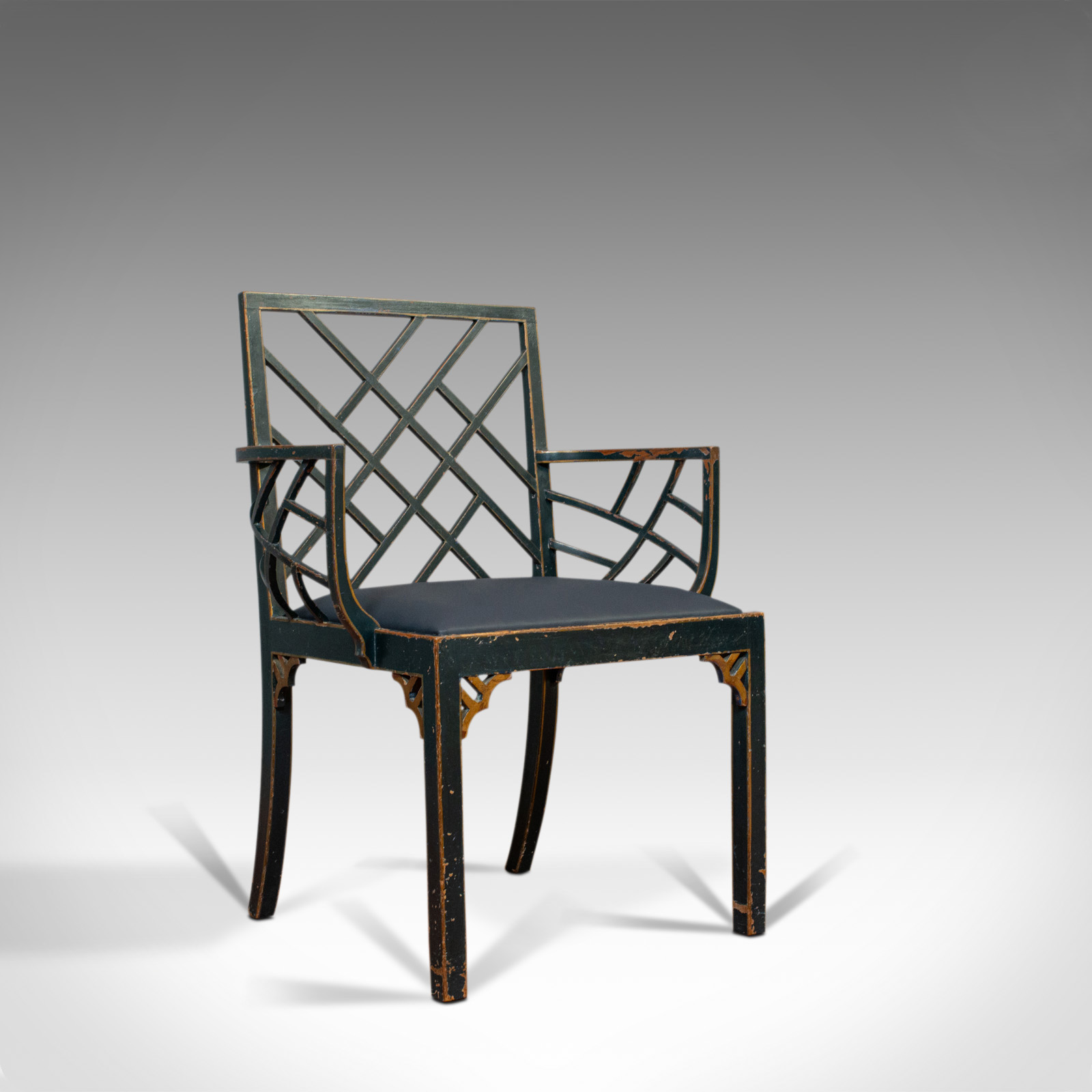 Antique Birdcage Elbow Chair, English, Painted, Leather, Regency c.1820 (1 of 12)