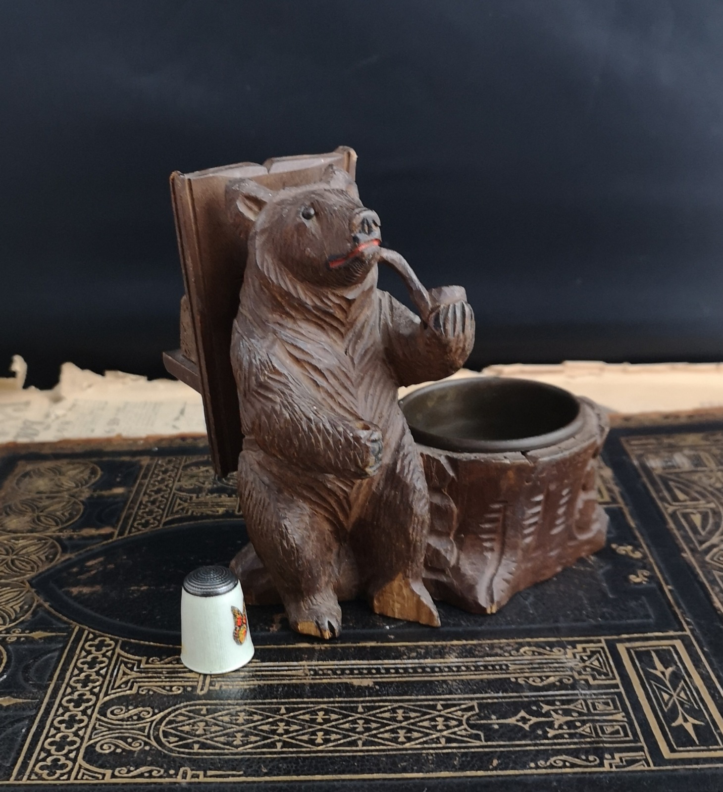 Antique Black Forest Bear Figural Ashtray & Match Safe