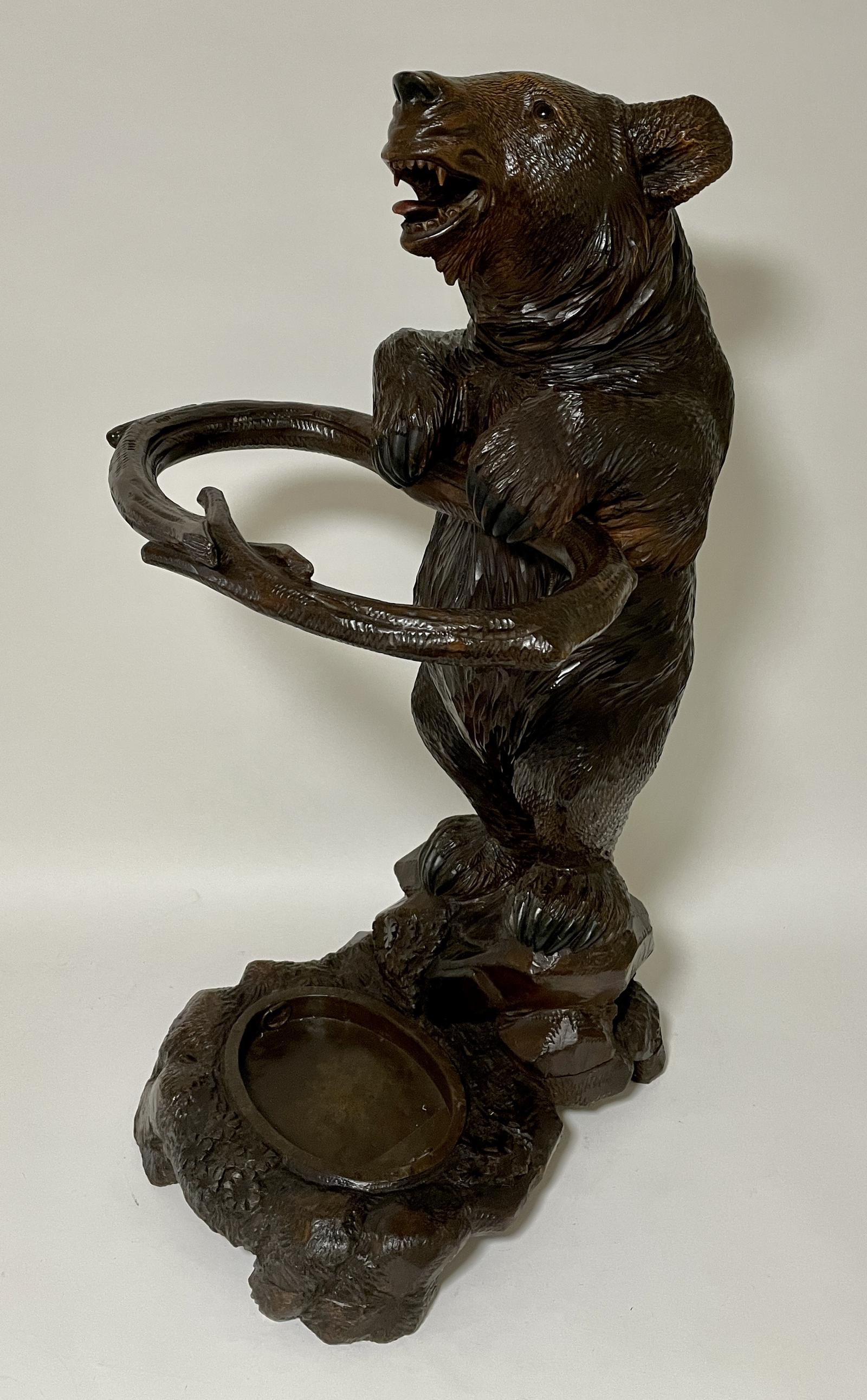 Antique Black Forest Carved Bear Stick & Umbrella Stand