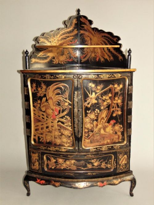 Antique Black Lacquer Chinese Chinoiserie Corner Cabinet c.1910 (1 of 1)