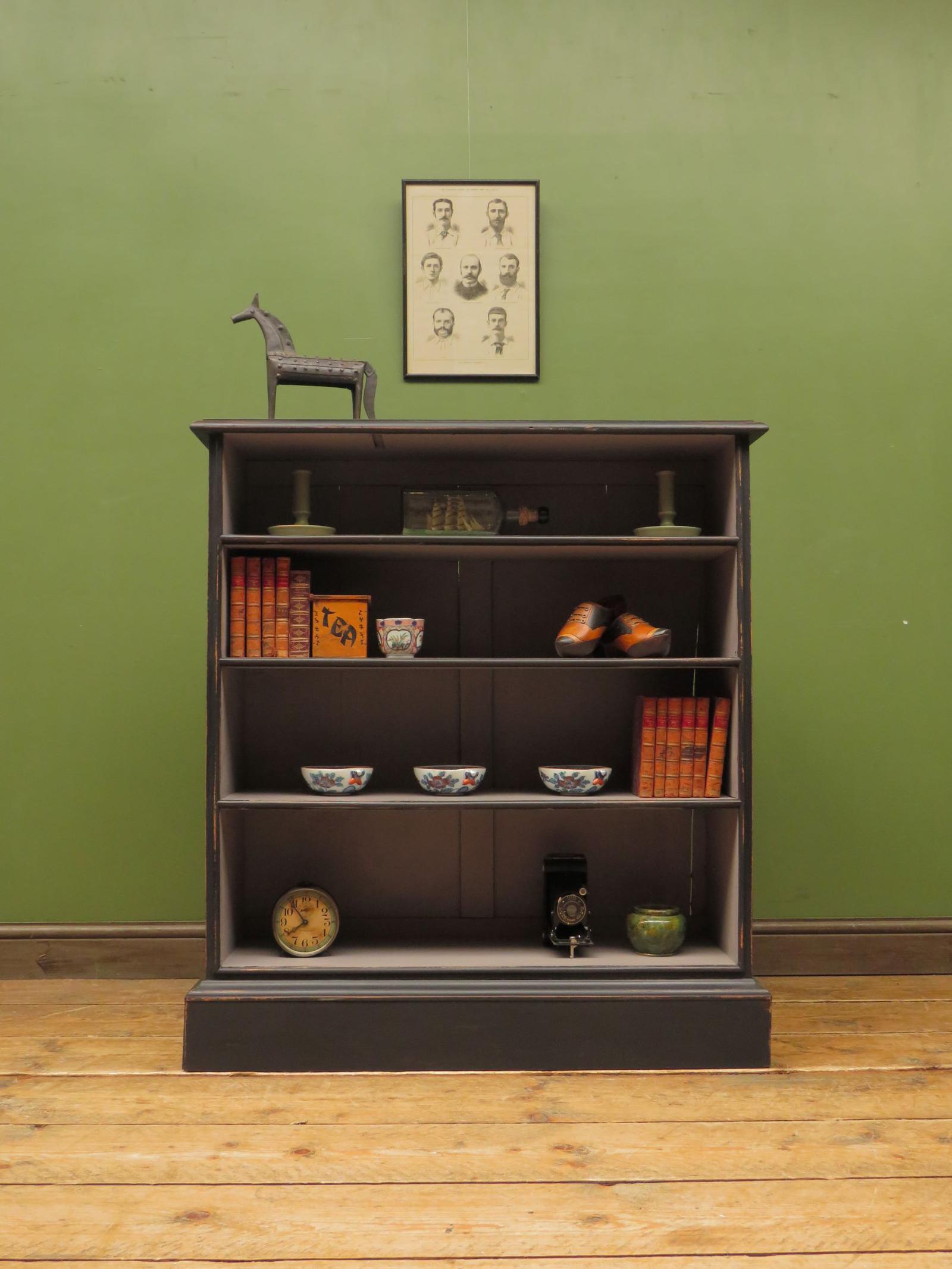 Antique Black Painted Bookcase Shelves with Grey Interior