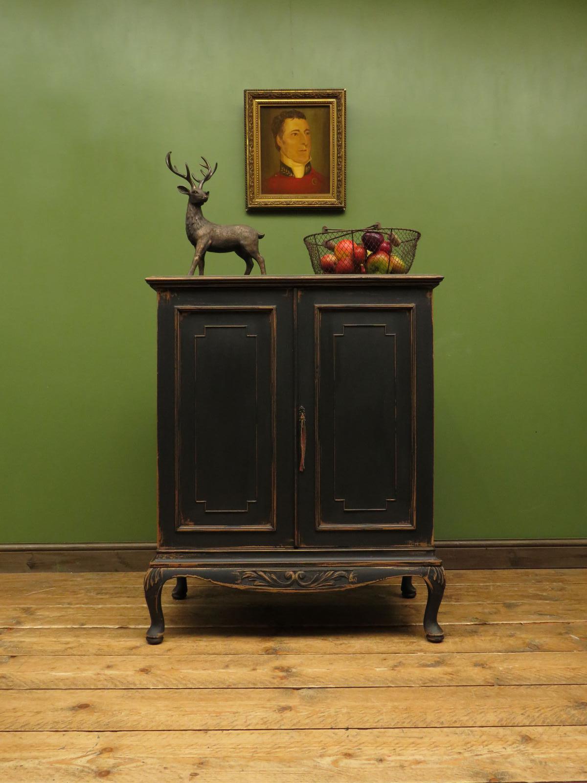 Antique Black Painted Cabinet. TV Cabinet, drinks cabinet, shabby chic, Gothic