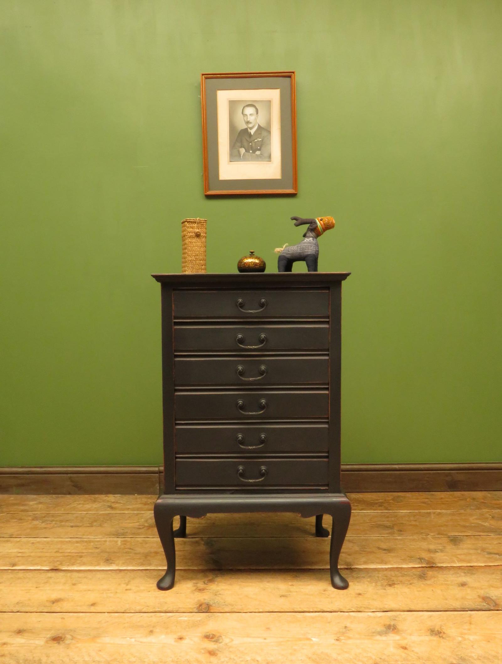 Antique Black Painted Music Cabinet / Office Chest with Fall Front Drawers