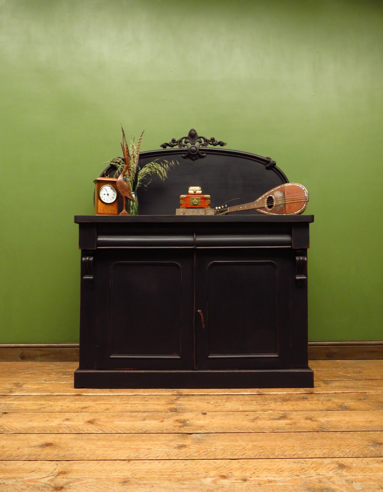 Antique Black Painted Sideboard Chiffonier Drinks Cupboard