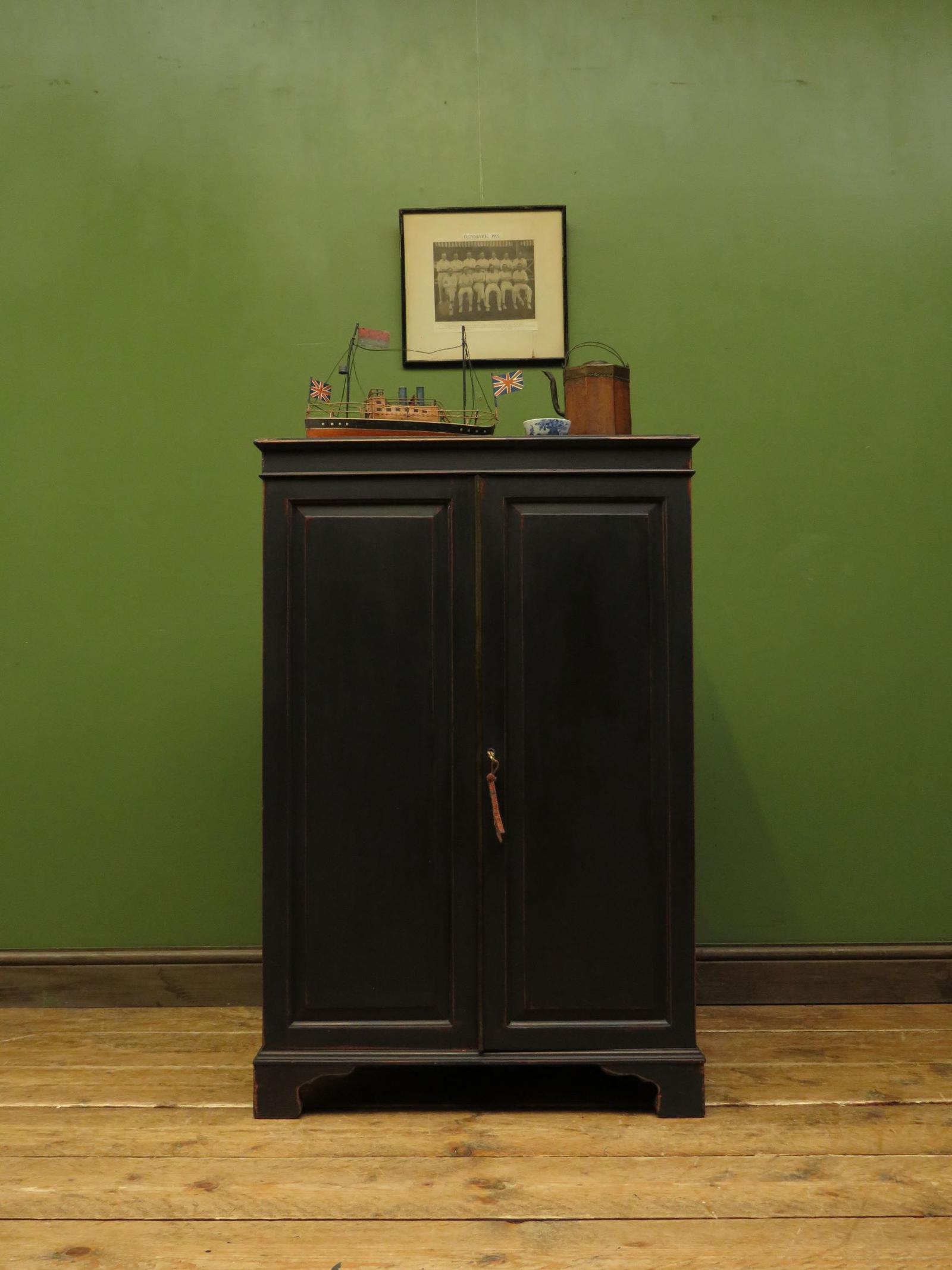 Antique Black Painted Storage Cabinet, Gothic Shabby Chic, Spillman & CO, London