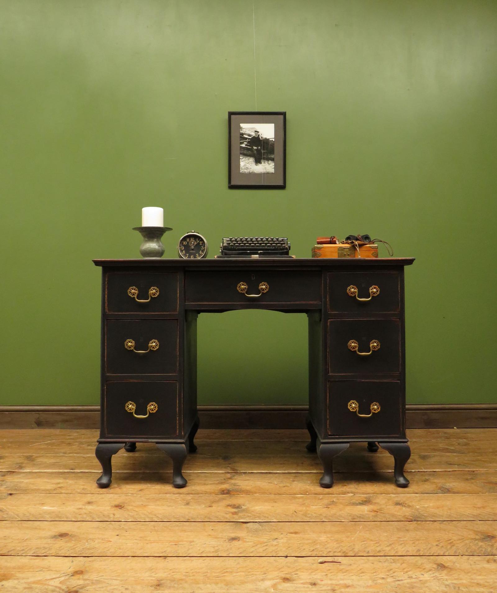Antique Black Painted Writing Desk, Gothic Shabby Chic
