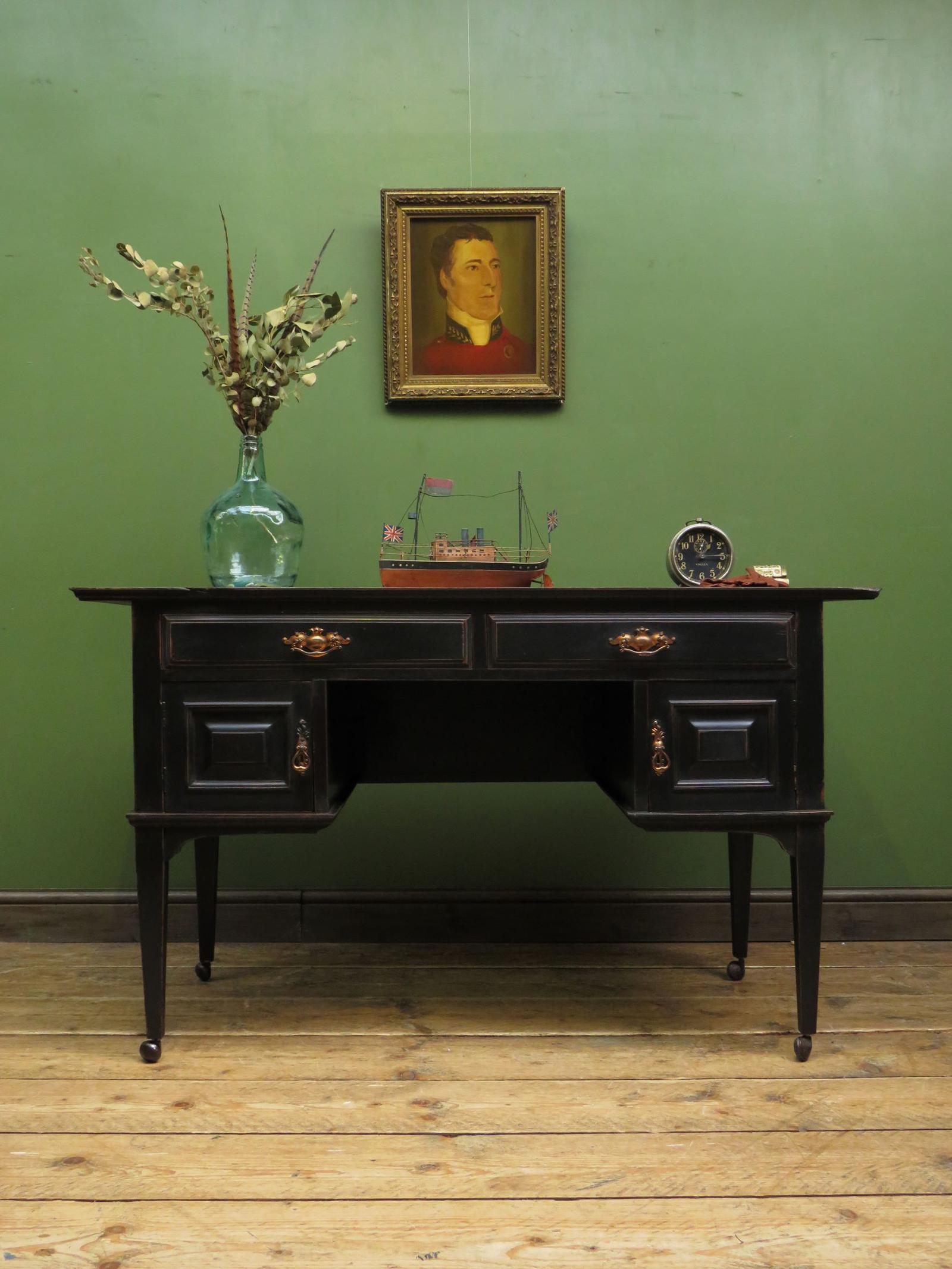 Antique Black Painted Writing Desk with Drawers, Gothic Shabby Chic
