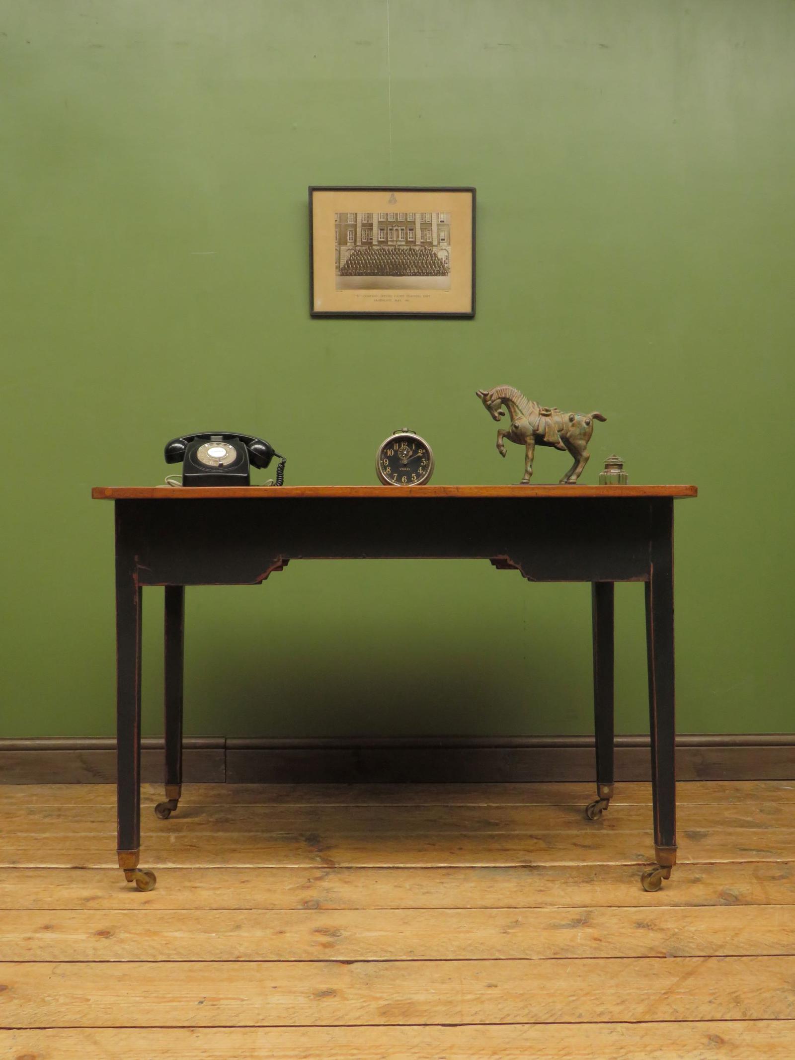 Antique Black Painted Writing Table with Wooden Top, Gothic Shabby Chic