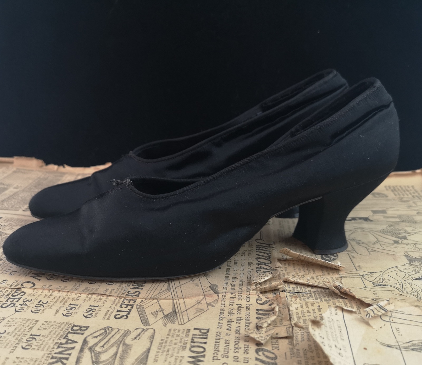 Antique Black Silk Shoes, Victorian