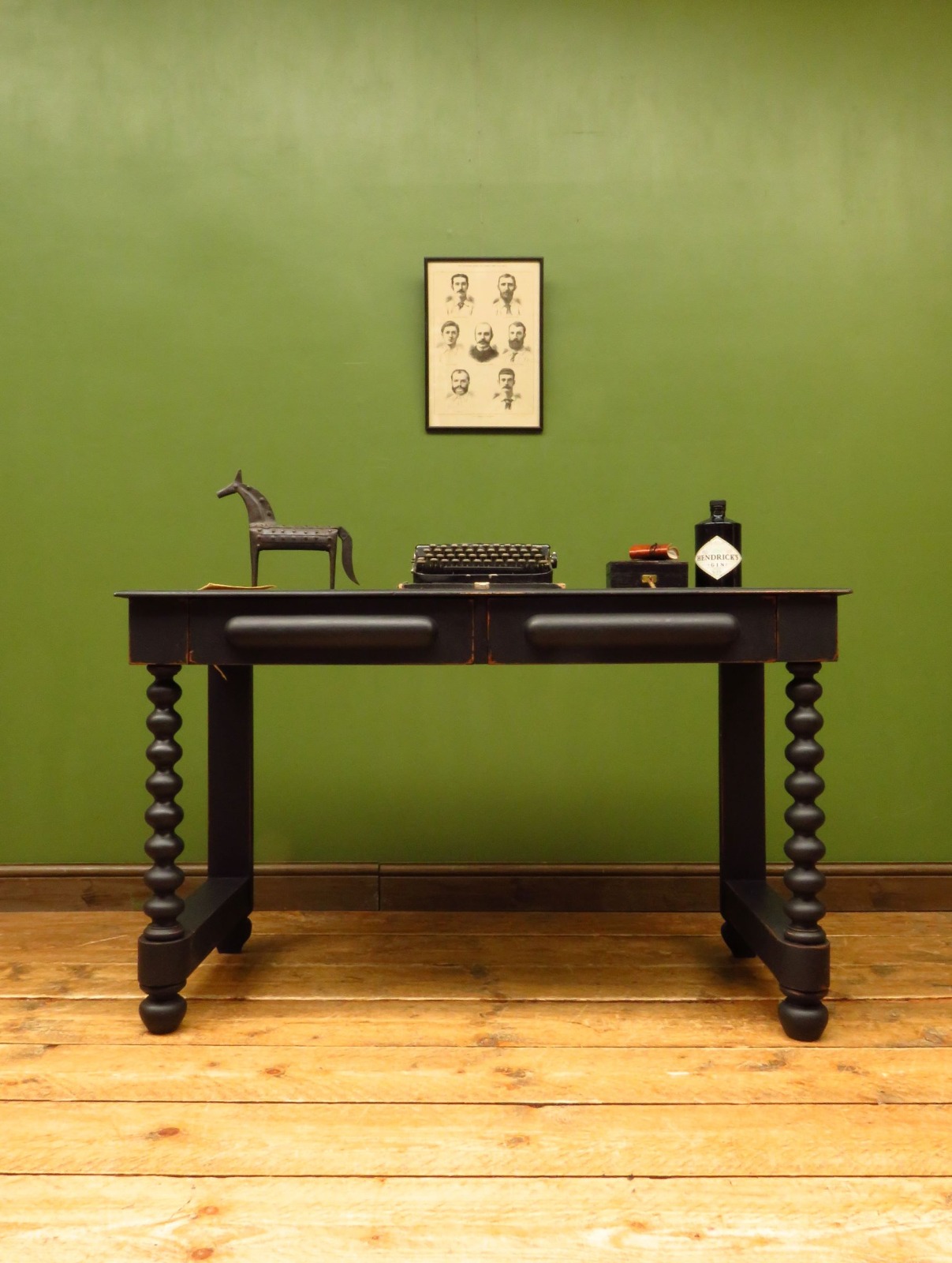 Antique Black Writing Desk Console Hall Table with Drawers, Gothic Shabby Chic