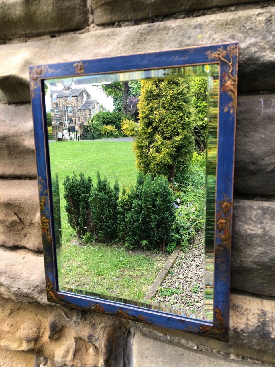 Antique Blue Lacquered Chinoiserie Wall Mirror