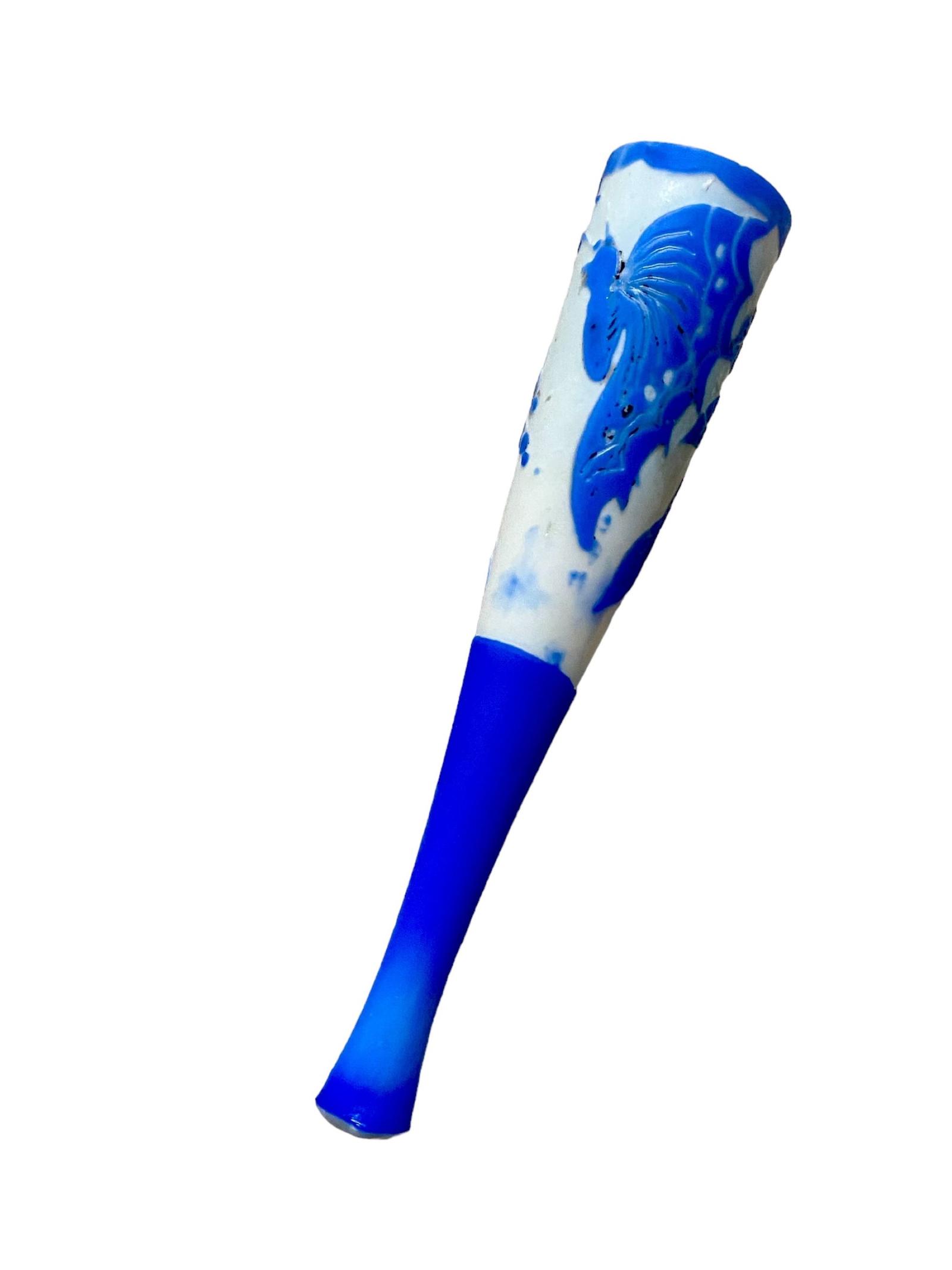 Antique Blue Over White Cut Glass Cheroot Cigarette Holder c.1900
