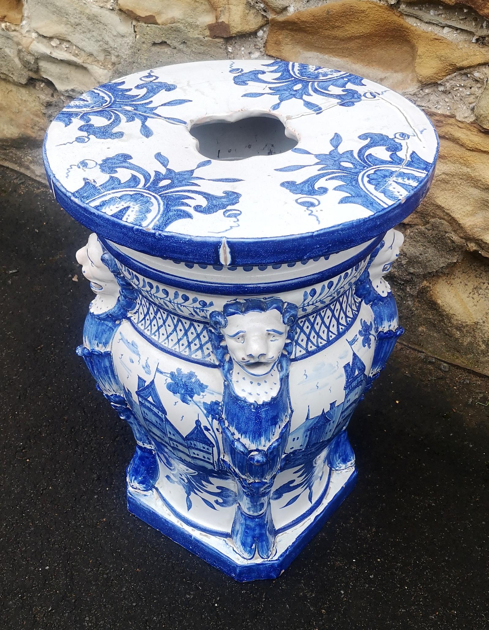 Antique Blue & White Delft Garden Seat / Stand c.1800 (1 of 12)