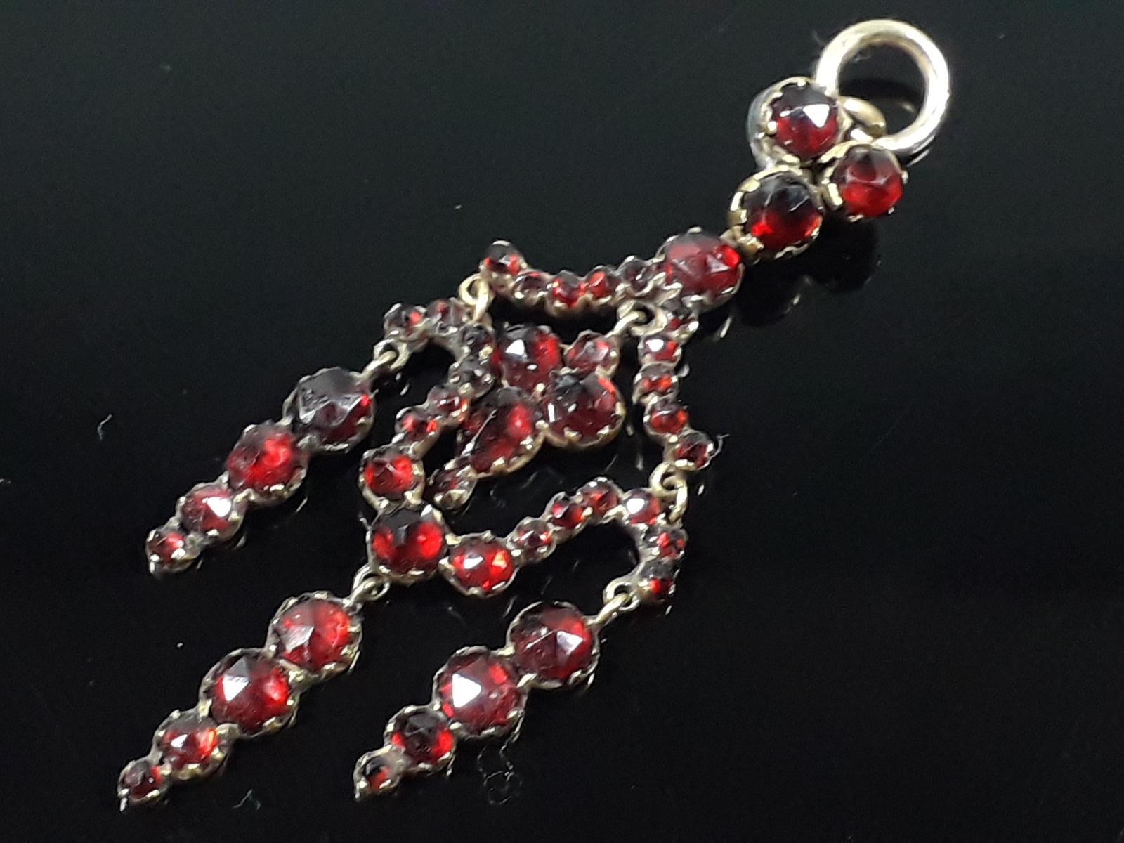 Antique Bohemian Art Nouveau Silver Gilt Garnet Lavalier Pendant