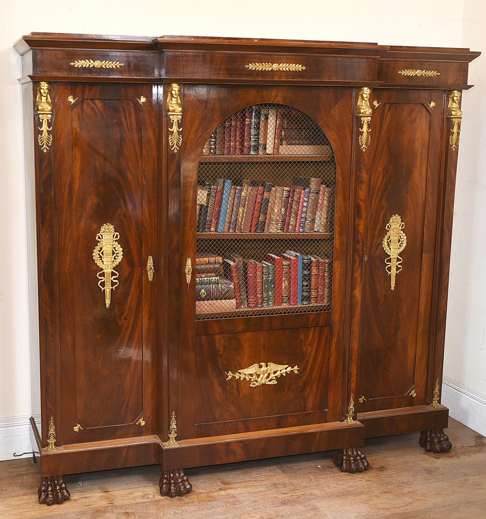 Antique Bookcase - French Empire Cabinet Flame Mahogany c.1880