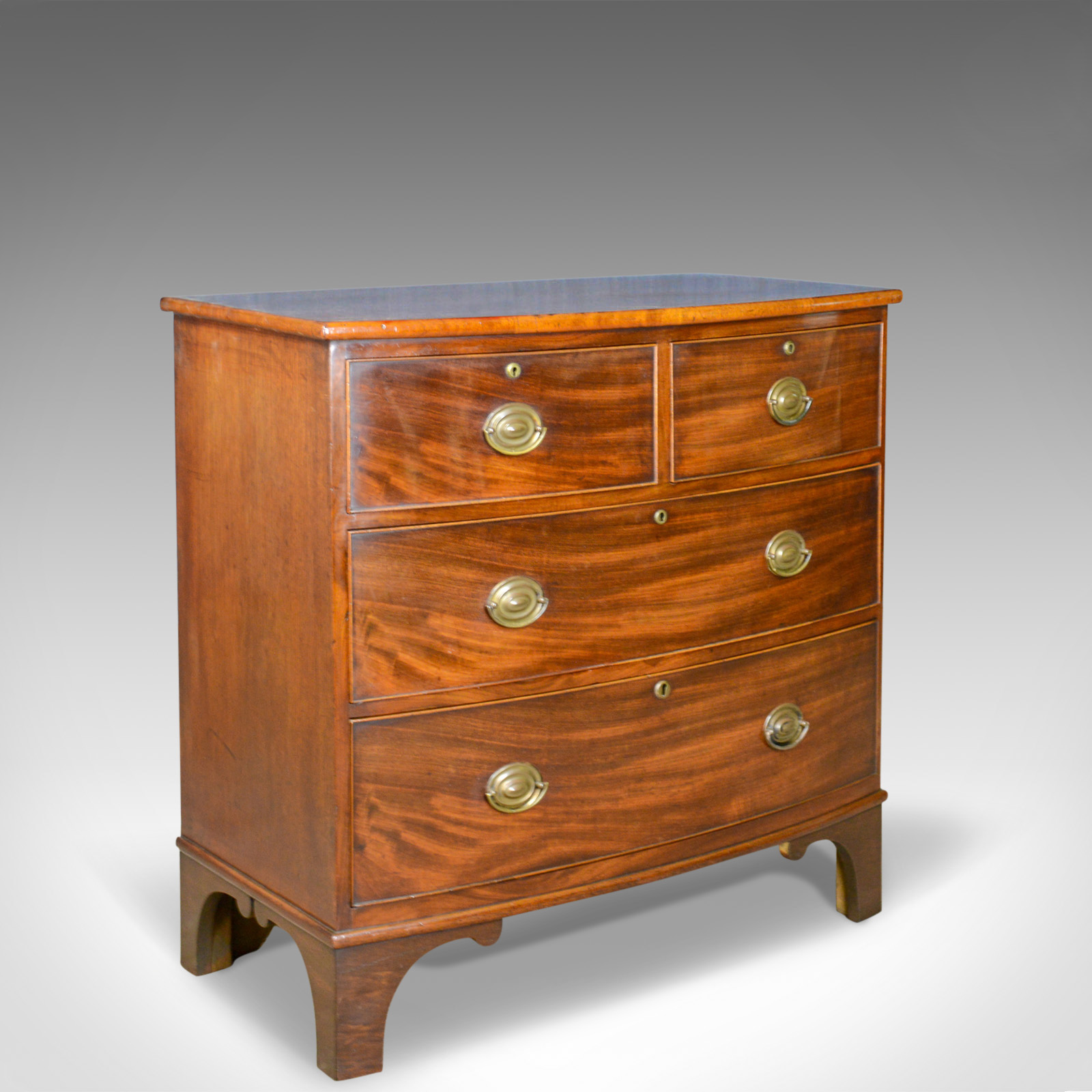 Antique Bow Front Chest of Drawers, English, Georgian, Mahogany c.1790