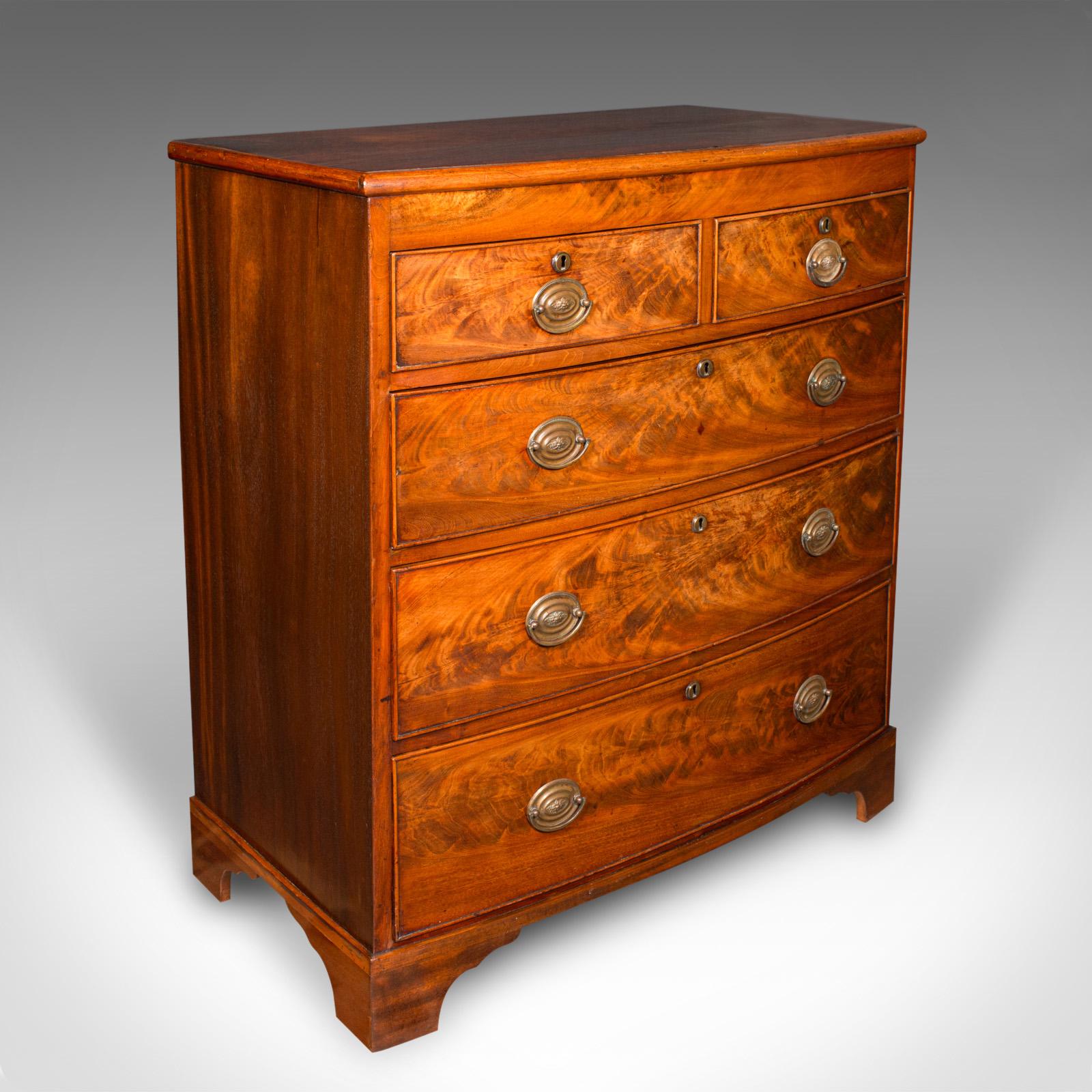 Antique Bow Front Chest of Drawers, English, Tallboy, Bedroom, Georgian c.1800