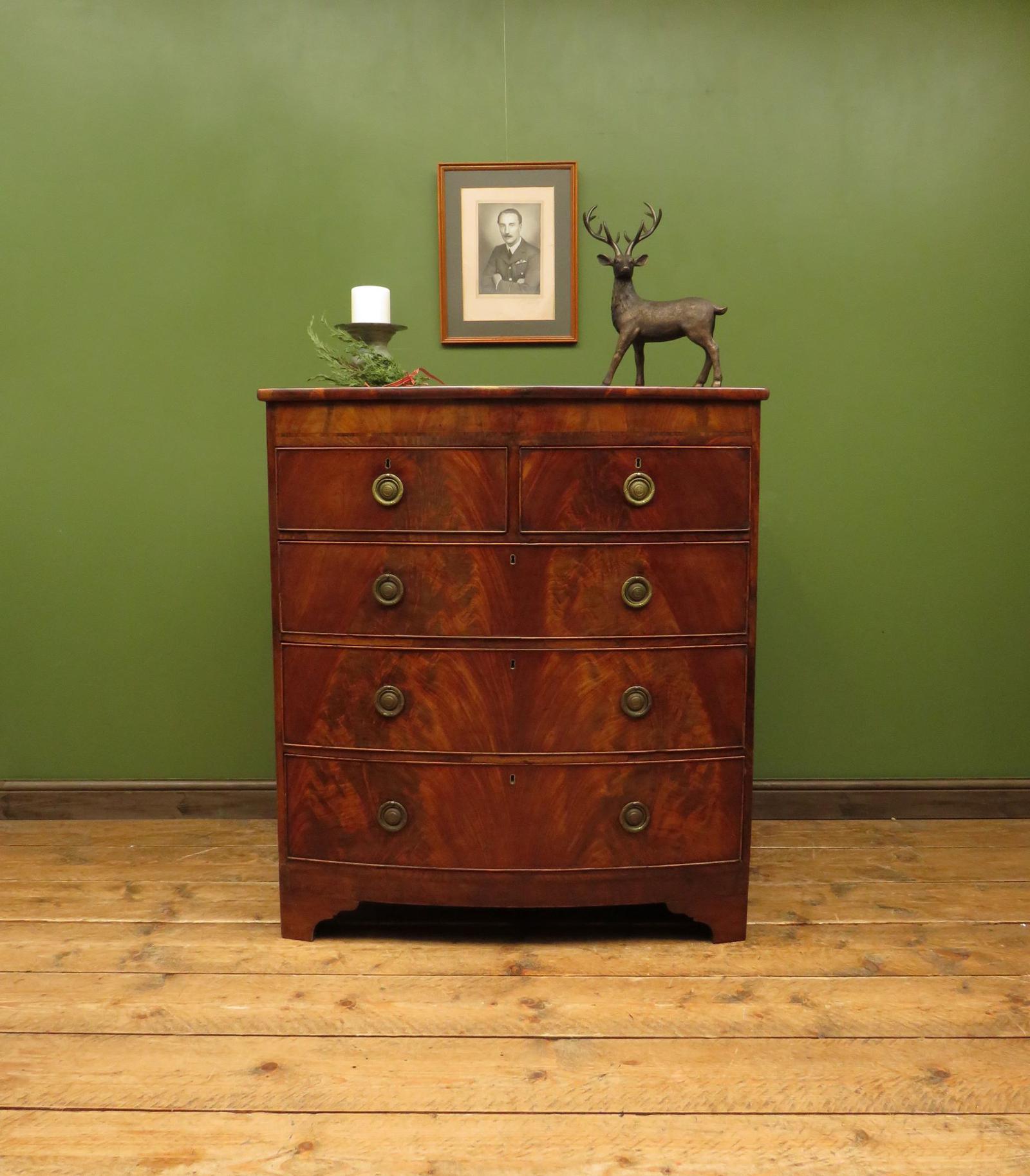 Antique Bow Front Mahogany Chest of Drawers, Country House Chest